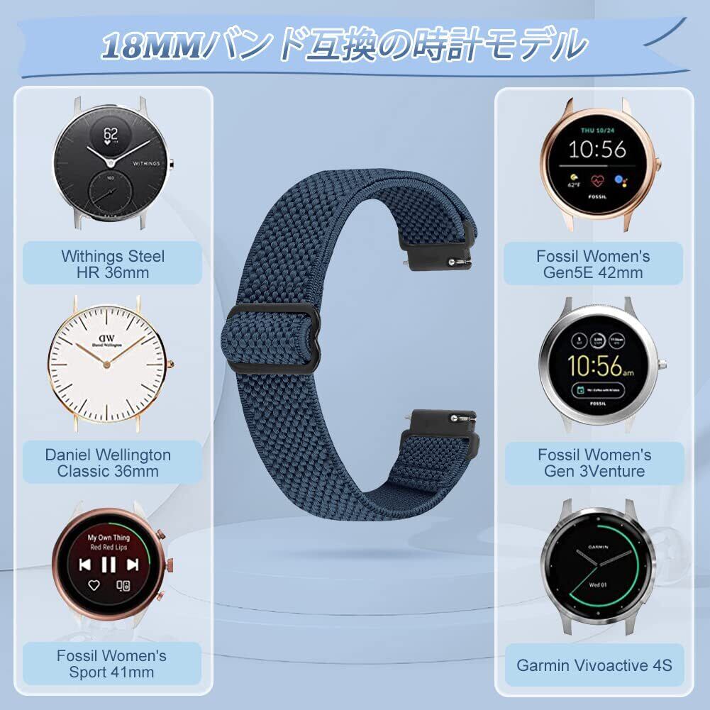 互換性のあるモデル:18mm 時計バンドは、18mmラグのあるすべての時計に対応しています。例えば、Garmin Venu 3S/Venu 2S/Vivoactive 4S/Vicomove 3S/Active S,Garmin Forerunner 255S/Forerunner 255S Music/Forerunner 265S; Fossil Women's Gen 6 42mm/5E 42mm/Gen 4 Venture HR/Charter HR, Fossil Q Gen 3/Venture HR/Gen 4 Women’s Sport/Scarlette/Sloan HR/Q Tailor; Huawei Watch GT 4 41mm; Huawei Talkband B5; Huawei Watch/Huawei Women’s/Huawei Fit; LG Watch Style.