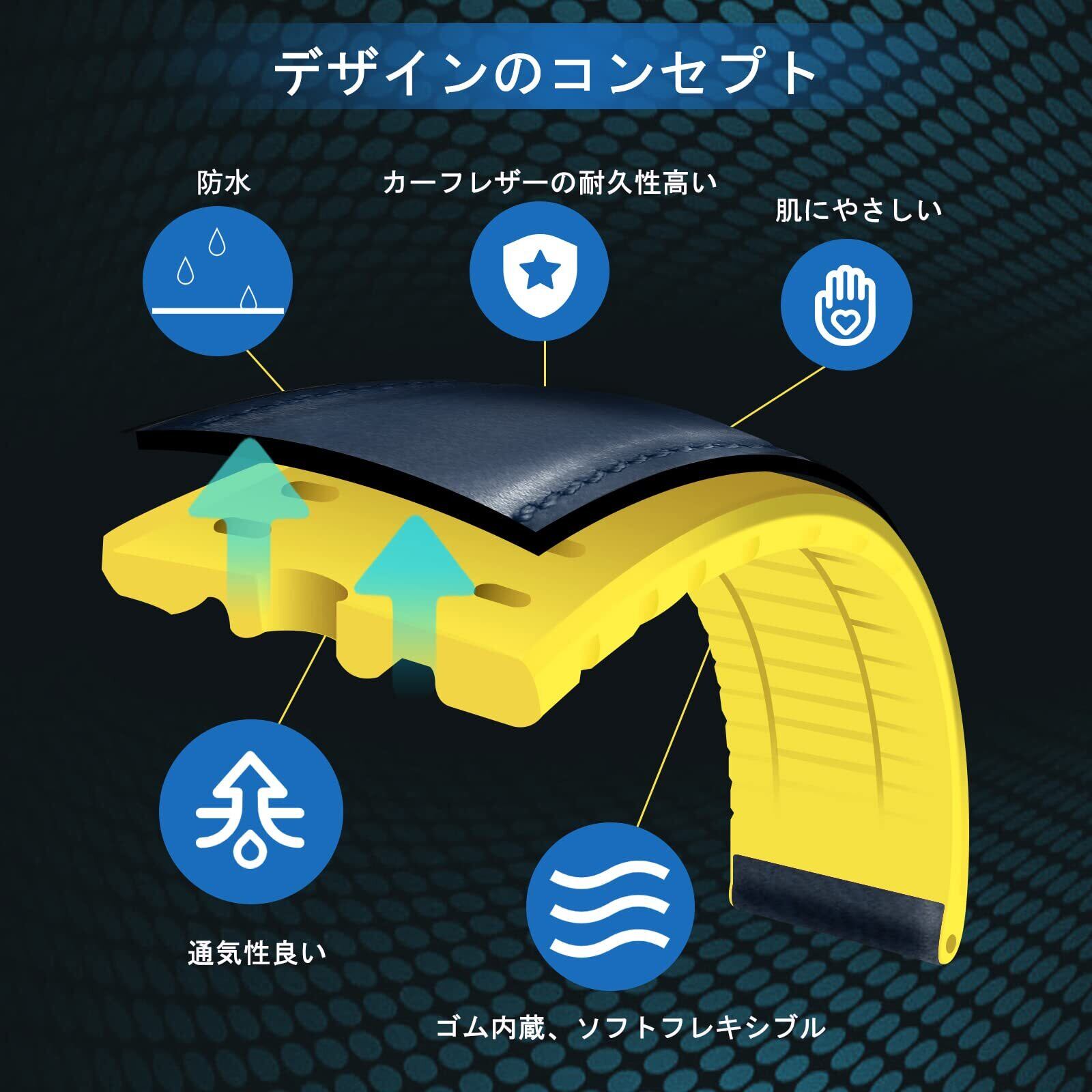 【ユニークなデザイン】暑い日に革時計バンドが肌にくっつくのを防ぎ、ウォッチベルトの背面は、シリコンゴムを組み合わせています。通気性のある溝のデザイン、肌に呼吸するスペースを与え、ストラップの重量を軽減し、着用体験を向上させます。