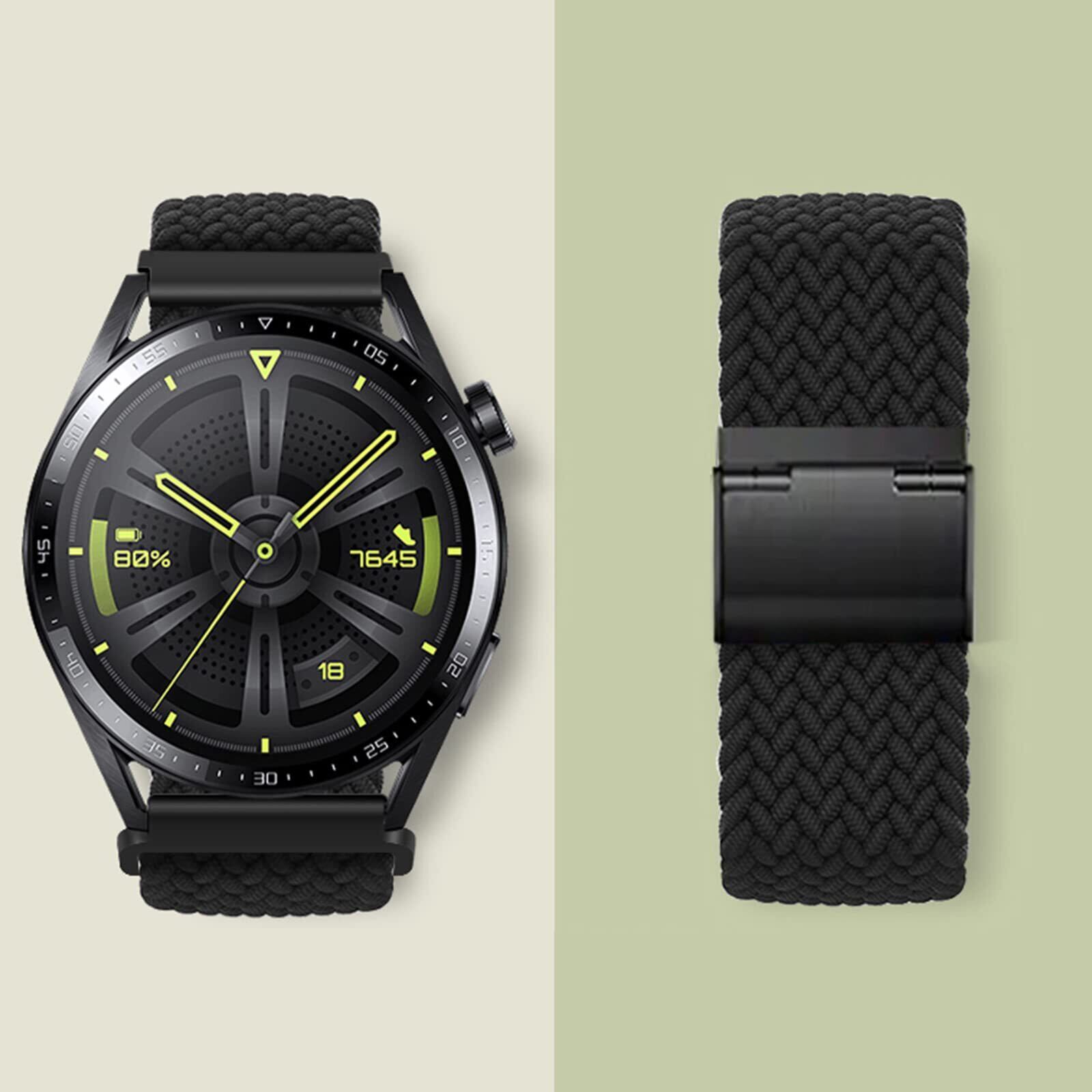 AGUPERFIT 時計バンド 20mm 22mm 無段階に調整なステンレスバックルブレイデッドソロループベルト ファッションで快適な伸縮性で通気性の良いクイックリリースストラップ 腕時計とスマートウォッチ換えバンド (22mm, ブラック)