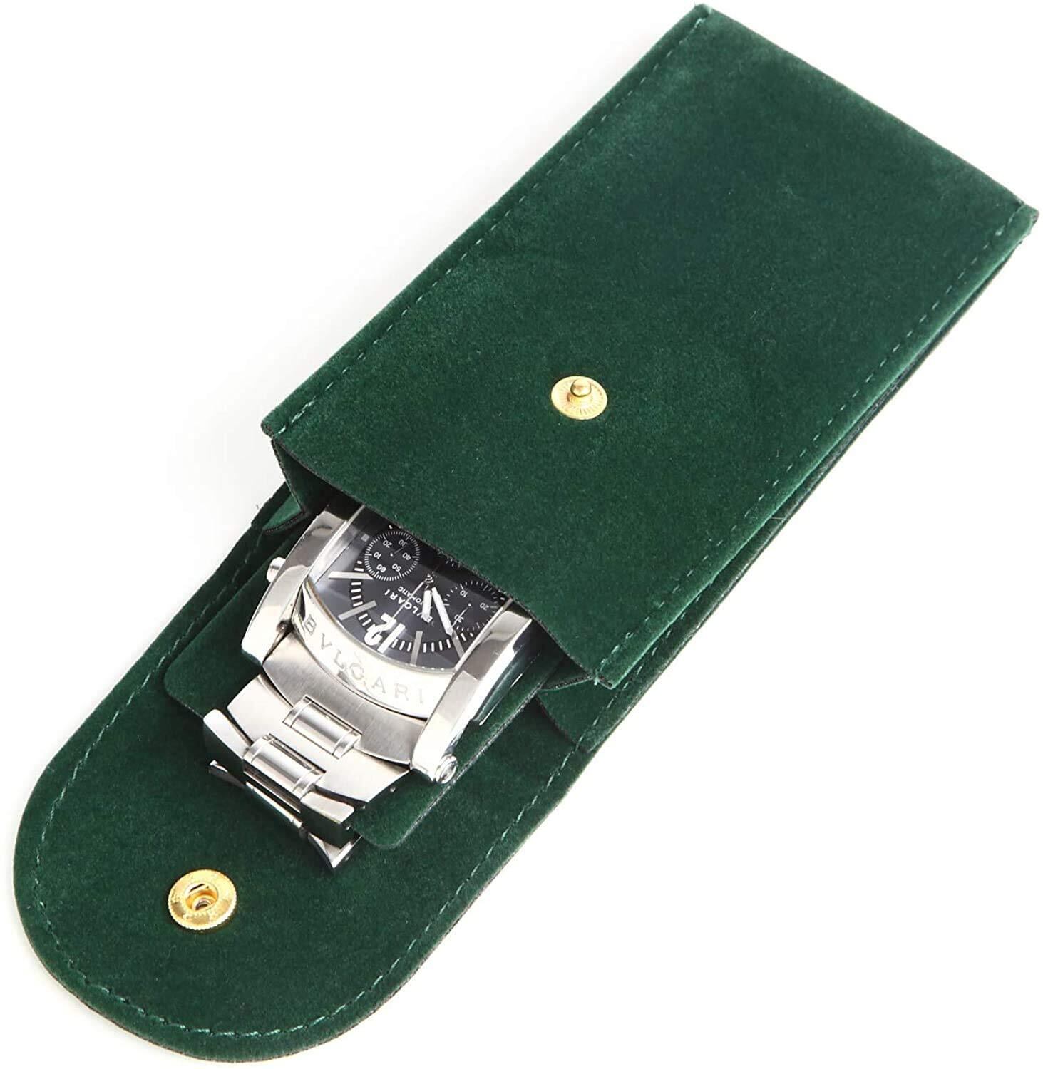 BestTown 1本用 腕時計ケース コンパクト 時計ポーチ スウェード調 時計収納 ウォッチケース 時計携帯 旅行・出張・持運び (ダークグリーン)