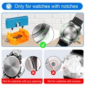 【該当する時計の種類】ウォッチバックケースオープナーは、回転して開くタイプのウォッチカバーにのみ適しており、その他のウォッチカバーには適していません。