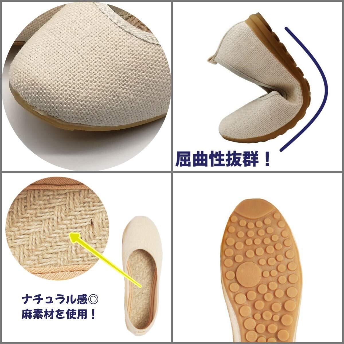 [APOSITV] レディース フラットシューズ 麻 フラットパンプス リネン 軽量 ローヒール ナチュラル
