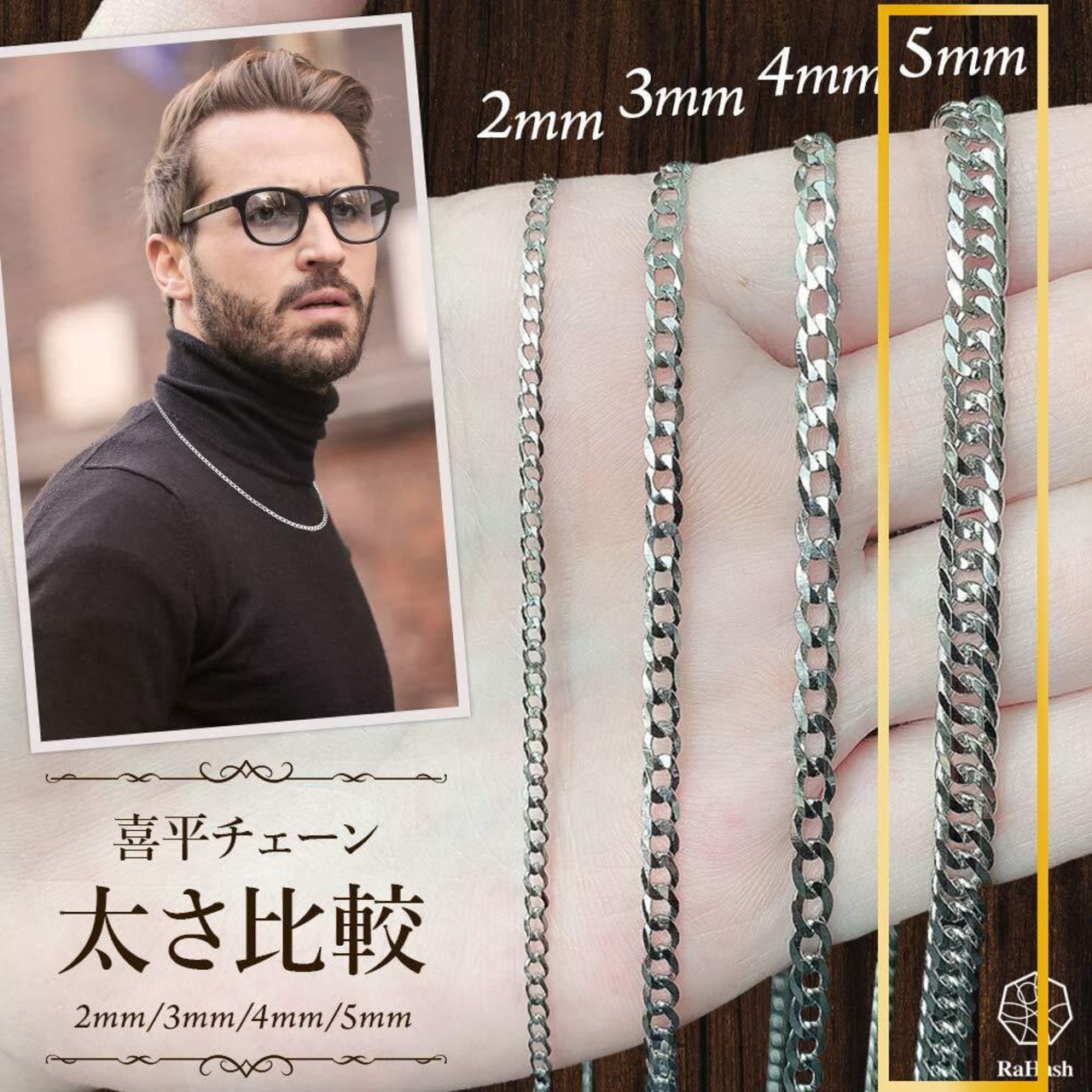 [RaHash] ネックレス チェーン メンズ 喜平 シルバー 925 ブランド [ 銀 6面カット ダブル 幅5mm ] [ 50cm ]