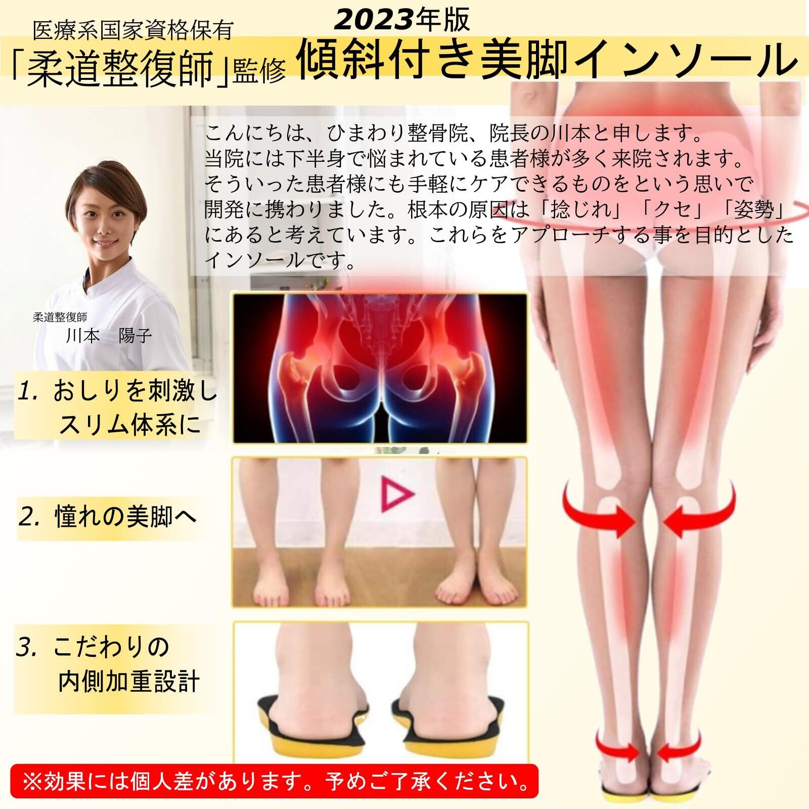 【柔道整復師監修】 O型脚 傾斜付き 美脚 インソール 中敷き 肌に優しいベルベット素材 男女兼用 eziu (1組, M)