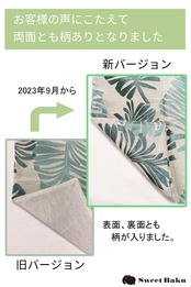 表面裏面とも観葉植物柄でジャガード織の糸に光沢があります。2023年9月より順次両面柄ありに変更中です。