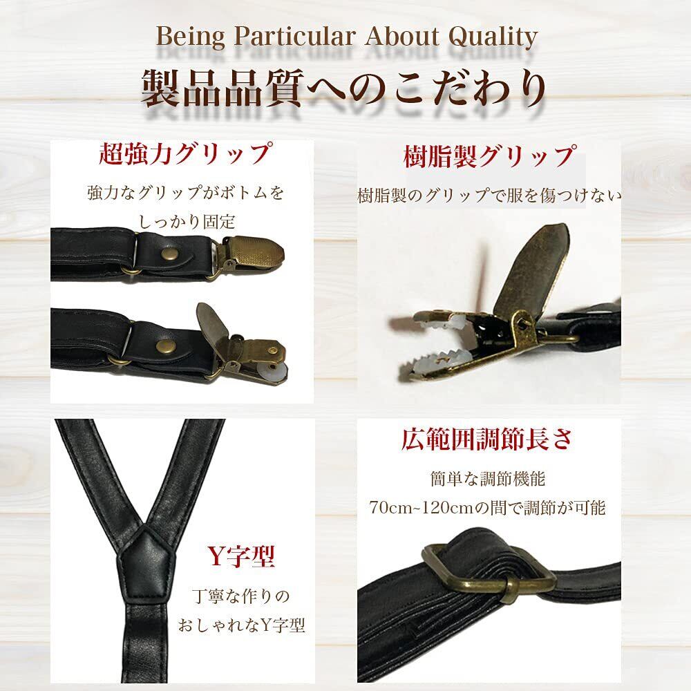 [nemomo] サスペンダー メンズ おしゃれ 革 Y型 20mm 樹脂 クリップ レディース PU レザー 男女兼用 調節可能 フォーマル ビジネス カジュアル