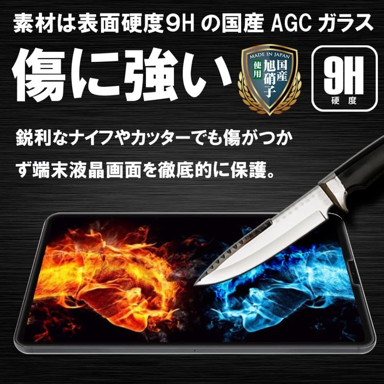 【高強度】2.5Dラウンドエッジ加工でガラスの縁の欠けや破損から保護。5層のレイヤー加工で硬度9H、国産AGCガラスで、鋭利な傷から保護、飛散防止加工でガラスの飛び散りを防ぎ液晶破損とケガから保護。