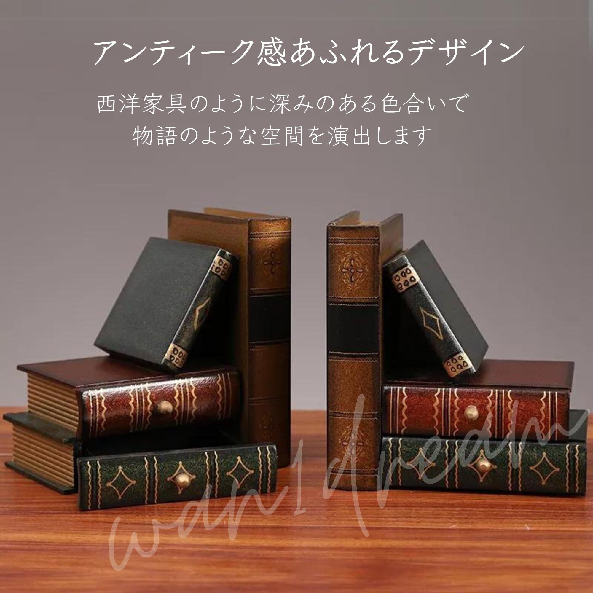 ブックイミテーションストレージ アンティーク 西洋 ダミーブック 小物入れ (ブックエンド)