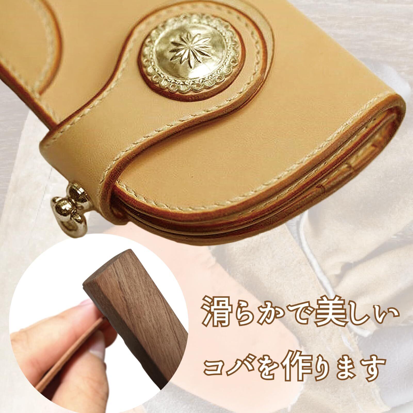 コバとは、革製品の端っこ、切れ端や切り口の事です。用途:レザークラフト製作時においてのコバ処理を行う為の仕上げ道具、通常はケヤキで出来ているものが多いがこの製品は檀木を使用。