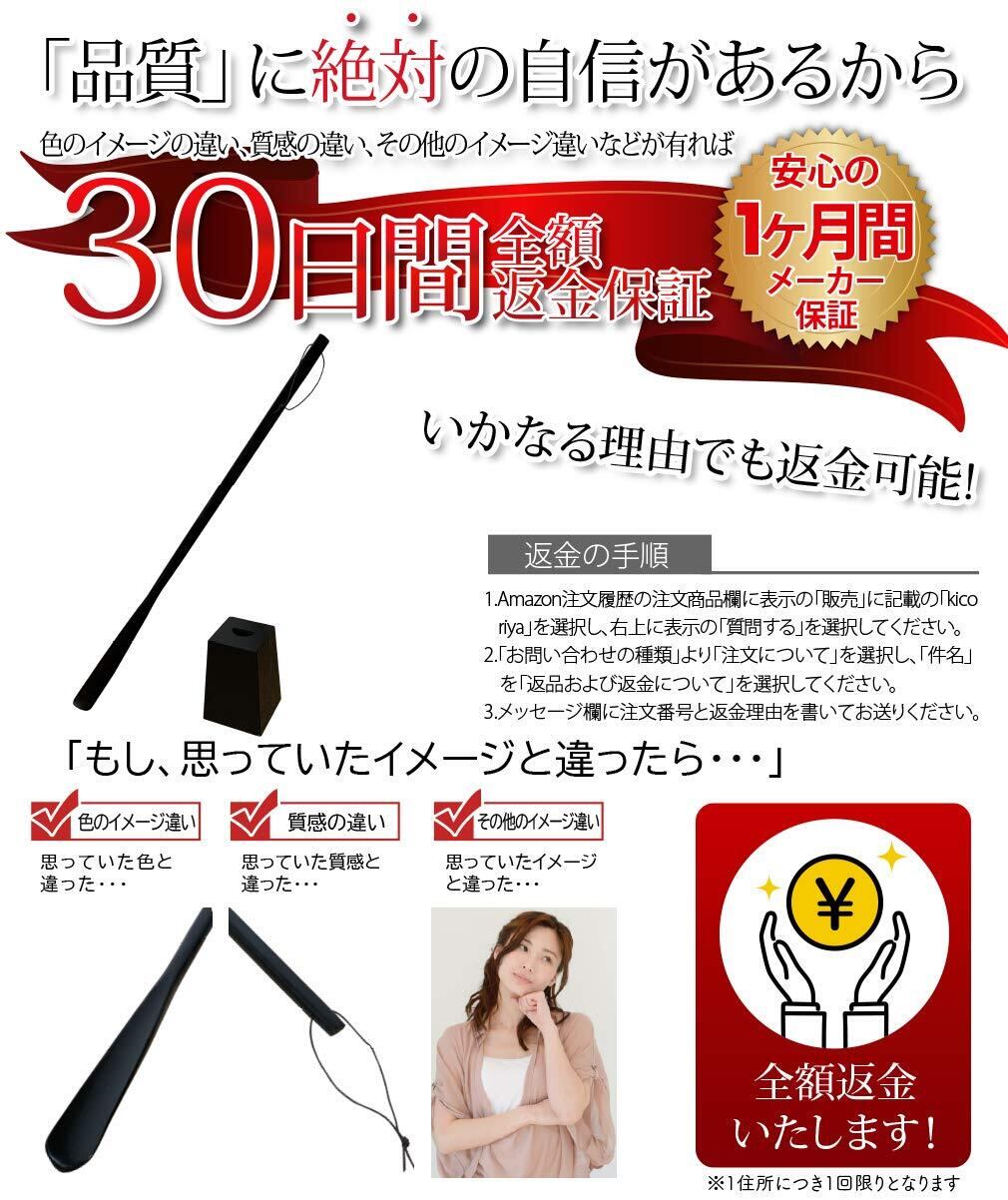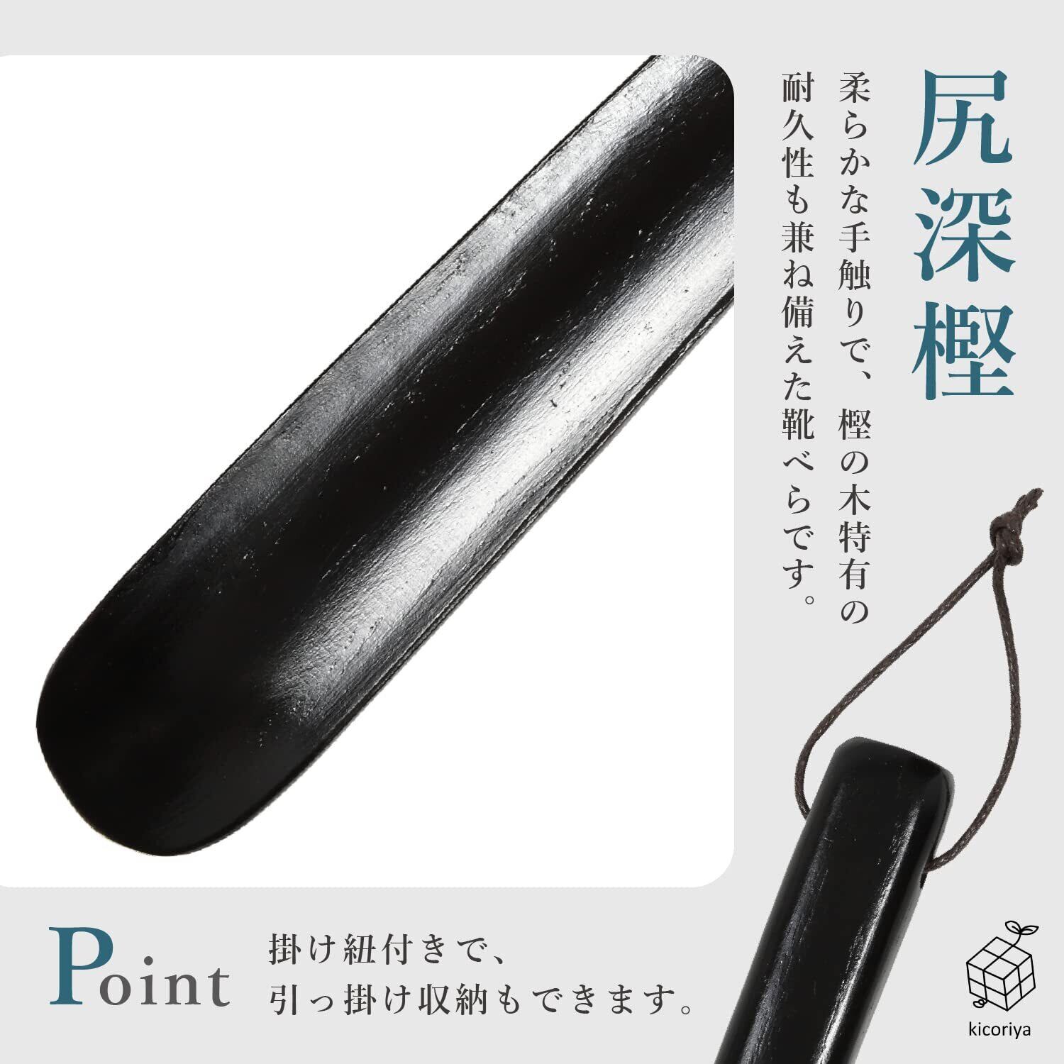 [kicoriya] 靴べら ベラ ロング スタンド 台付き 木製 長い 75cm おしゃれ クロス付属 ブラック 黒