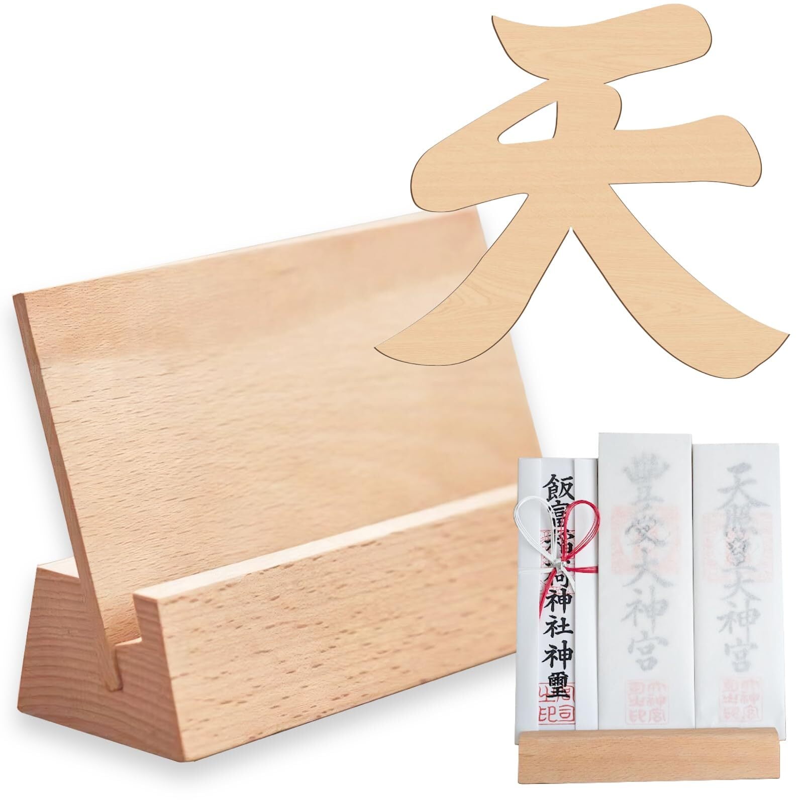 お札スタンド、天木彫りセットは大きな神棚は部屋に置きづらい、コンパクトサイズでもきちんとお札をお祀りしたい、品質にこだわる人に。設置にビスや金具不要、シンプルで和室、洋室などインテリアを問いません。
