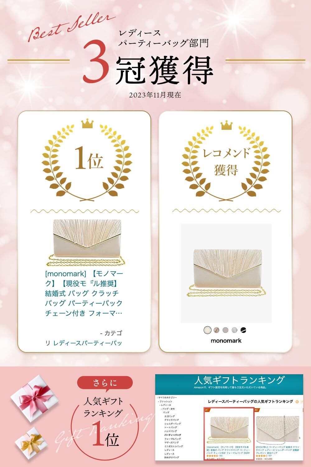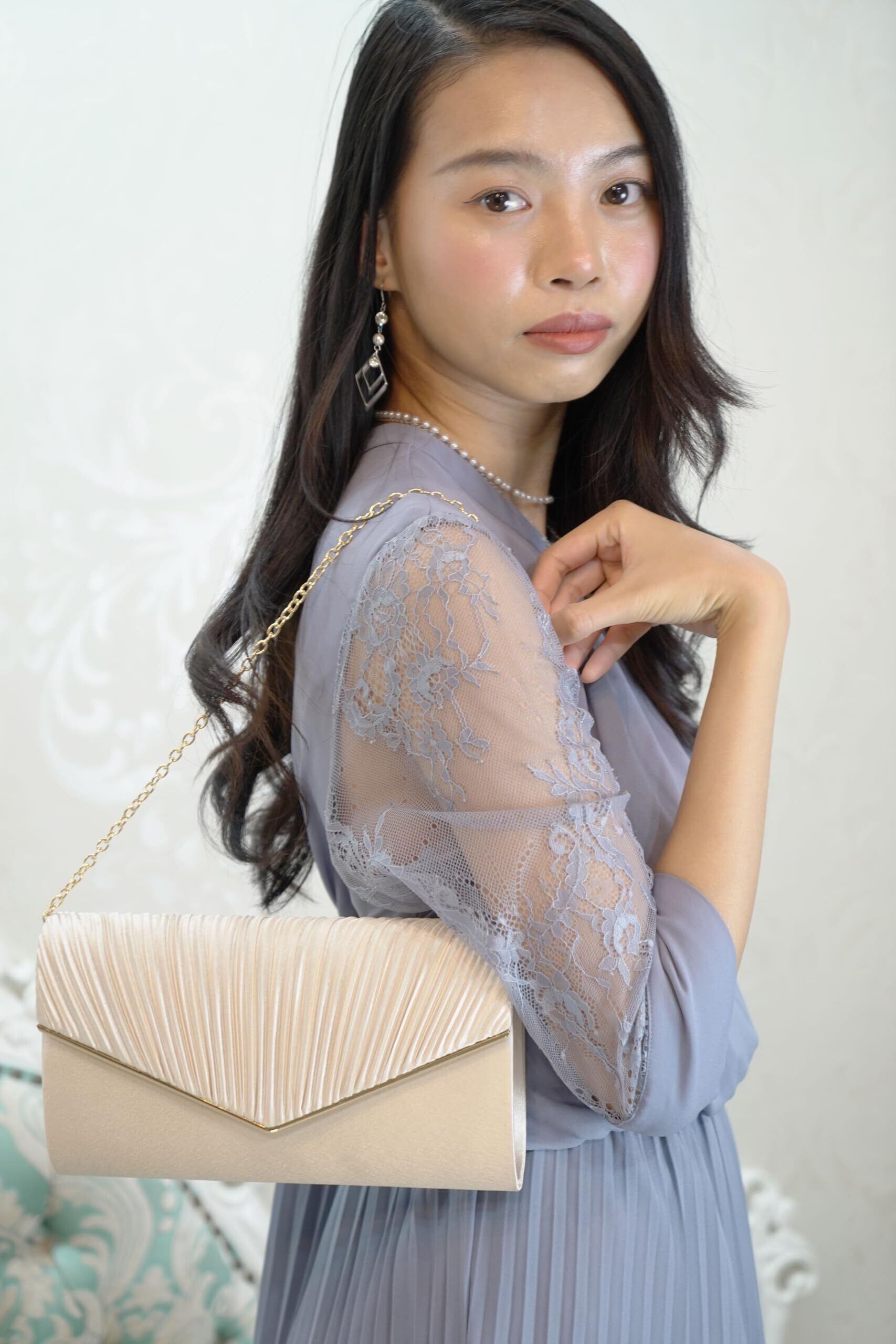 [monomark] 【モノマーク】【現役モデル推奨】結婚式 バッグ クラッチバッグ パーティーバック チェーン付き フォーマルバッグ 3WAY