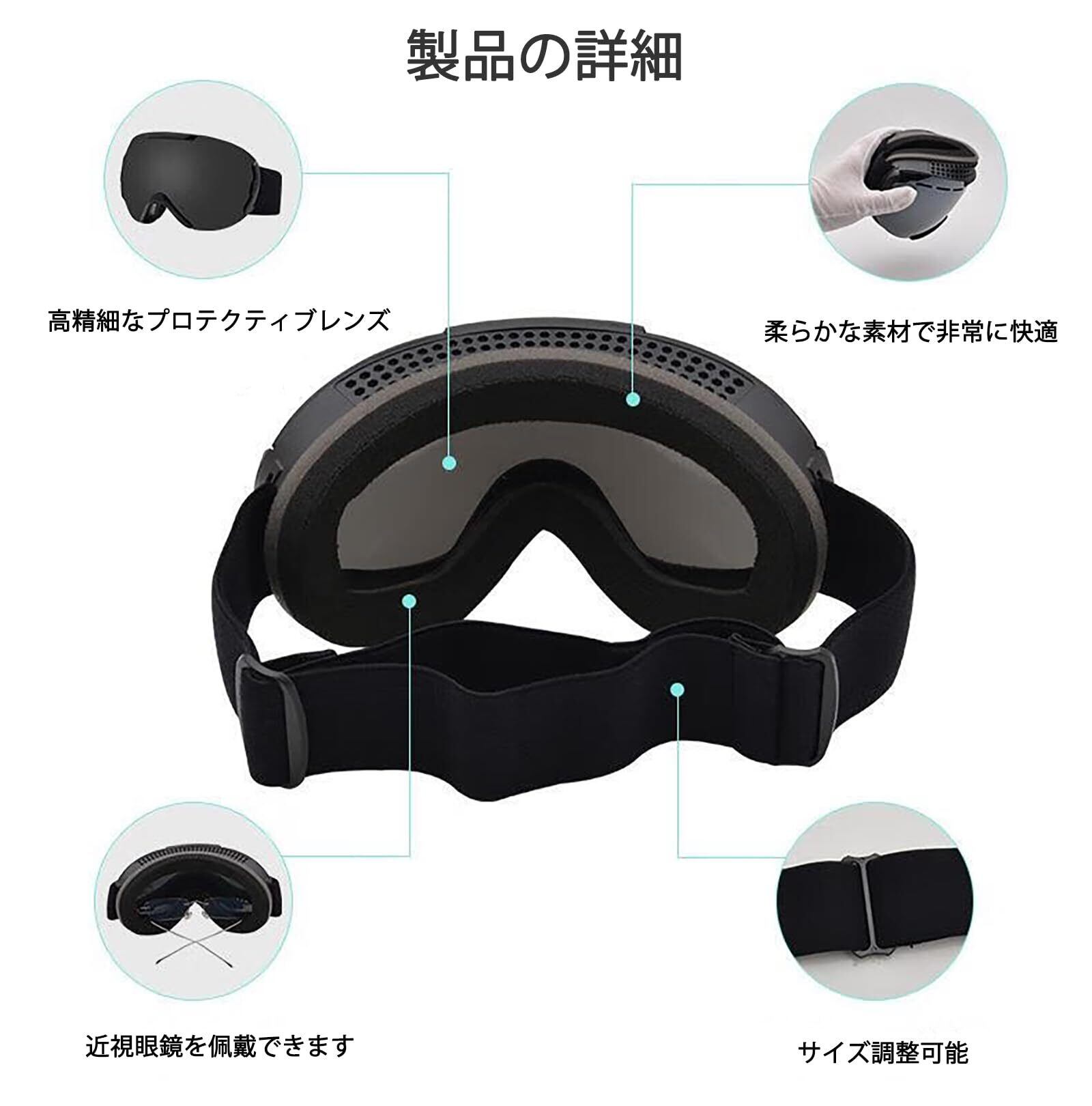 【メガネ対応可能】近視対応のスキーゴーグルですので、屋外での運動時もメガネを外さずにスキーを楽しめます。スキーゴーグルを使用して鮮明な視覚体験でウインタースポーツを楽しみながら、雪目の発症も心配が要りません。
