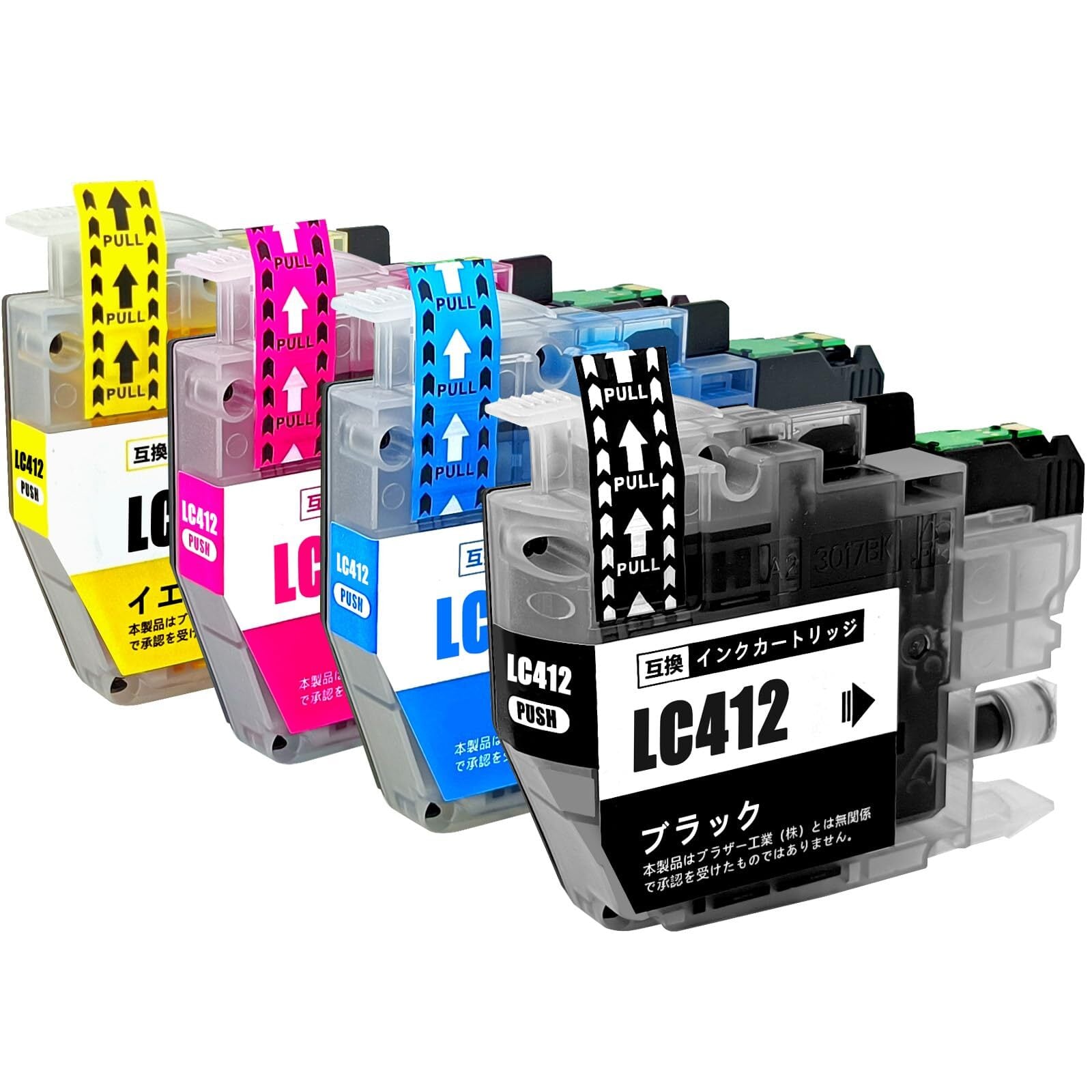 【商品内容】 ブラザー Brother用 LC412-4pk 大容量互換インクカートリッジ 4色セット、LC412BK 黒、LC412C シアン、LC412M マゼンタ、LC412Y イエロー 合計4本.