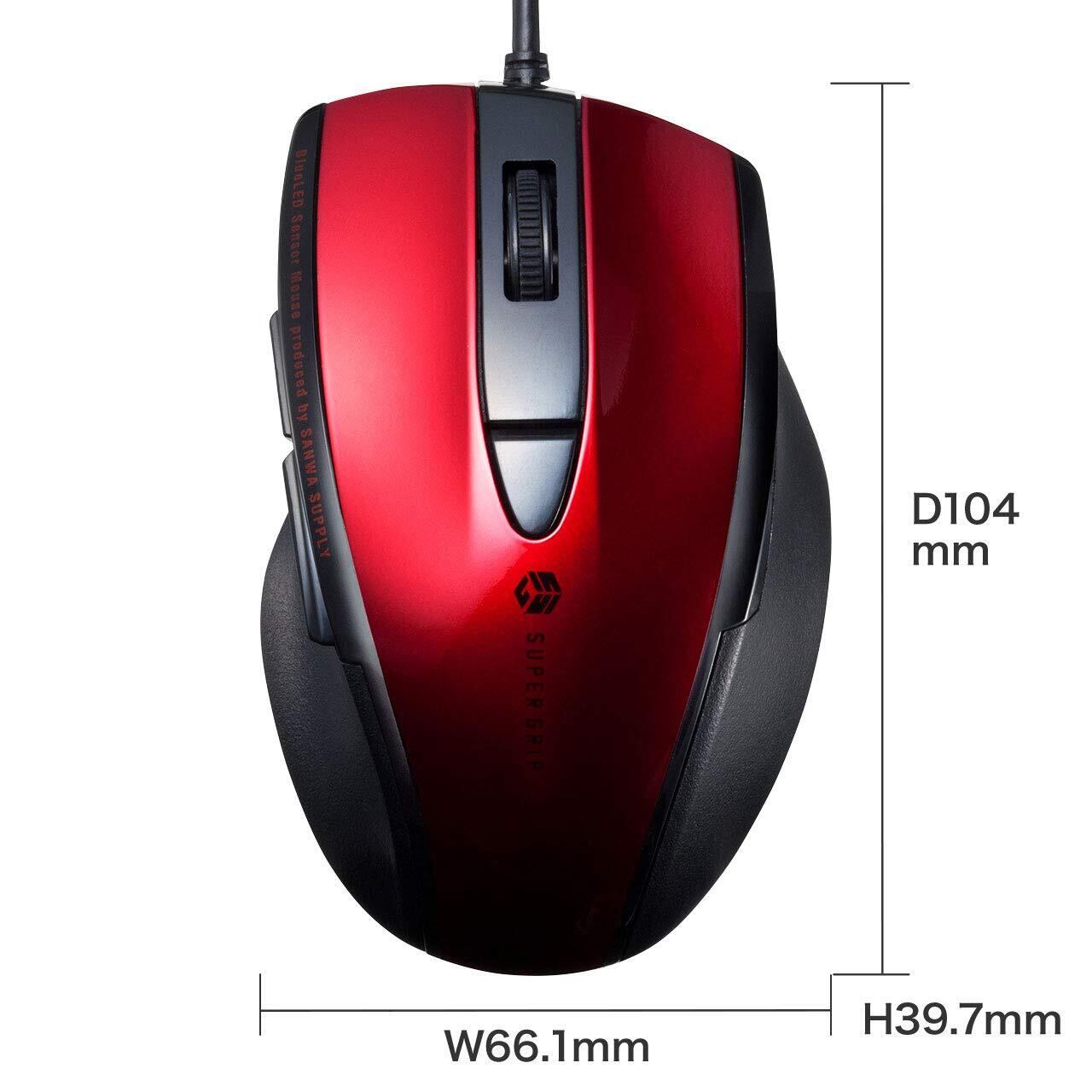 サンワサプライ(Sanwa Supply) マウス 有線 USB接続 静音 ブルーLED 5ボタン(戻る・進むボタン搭載) 中型 レッド MA-BL168R
