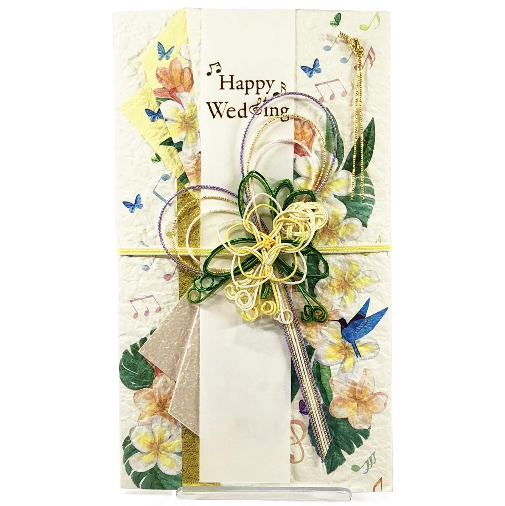 【その他】中包1枚・短冊3枚(Happy Wedding・御結婚御祝・無地)、プルメリアは大切な人の幸せを願う花です。3万~5万目安の新札で10万円まで入ります。