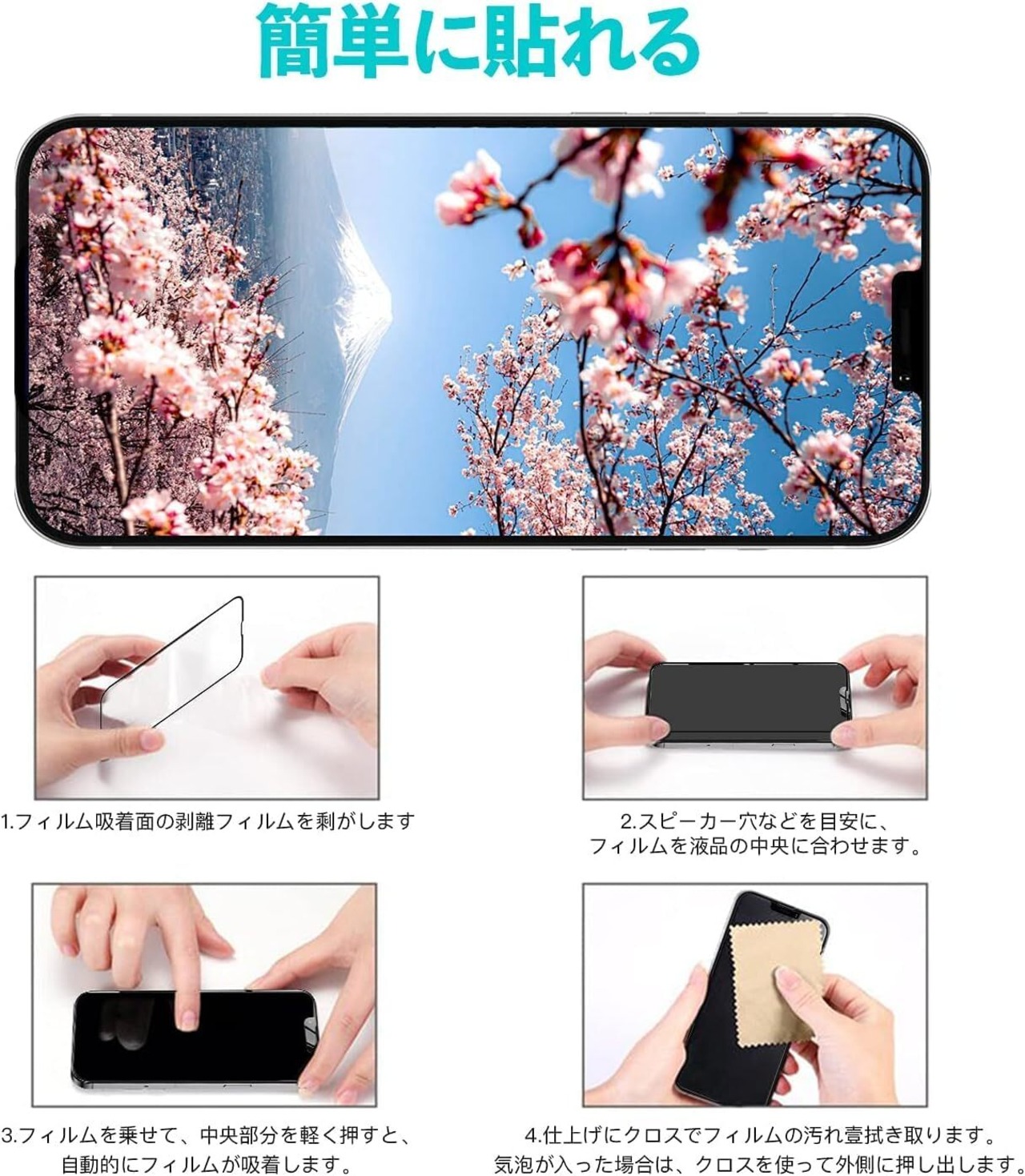 ⑤ 【貼り付け簡単&6.1インチ対応】初心者でも簡単に貼り付けられる設計。貼り付けキット付属で、誰でも簡単に装着可能です。iPhone SE4の6.1インチ画面に完全にフィットする設計で、画面全体をしっかりと保護します。