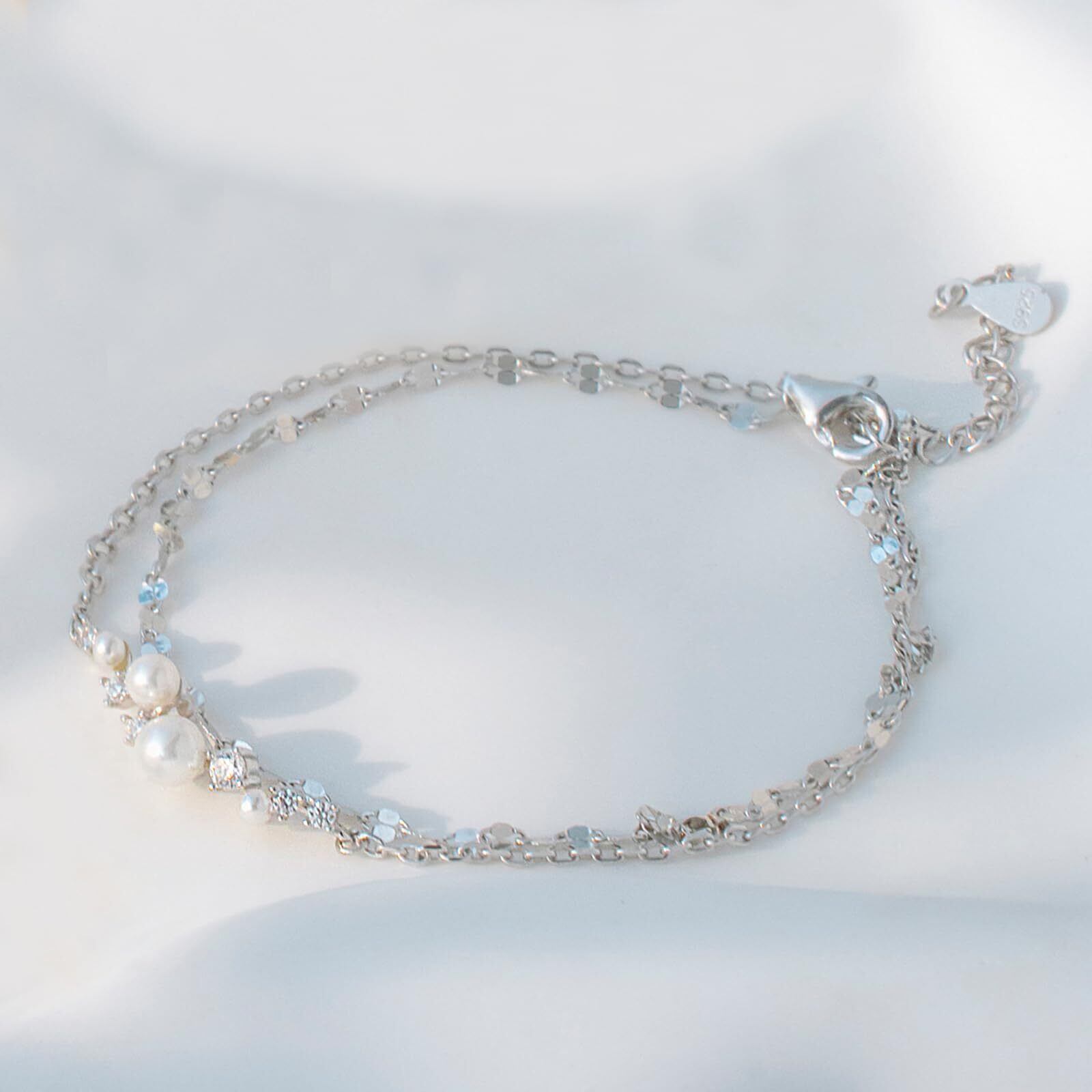 FH.bird パール ブレスレット レディース 結婚式 ブランド 金属アレルギー対応 シルバー925 ブレスレット 真珠 2連 シンプル bracelet women 誕生日 プレゼント 入学式 卒業式 ホワイトデー バレンタインデー