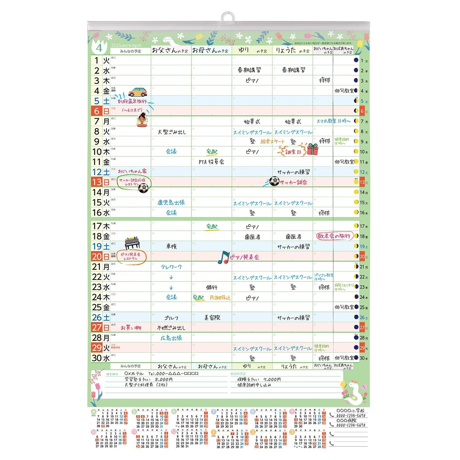 1999年に販売開始以来、四半世紀を超えて愛される東洋図書出版の「家族のスケジュールカレンダー」、2025年4月始まり版です。