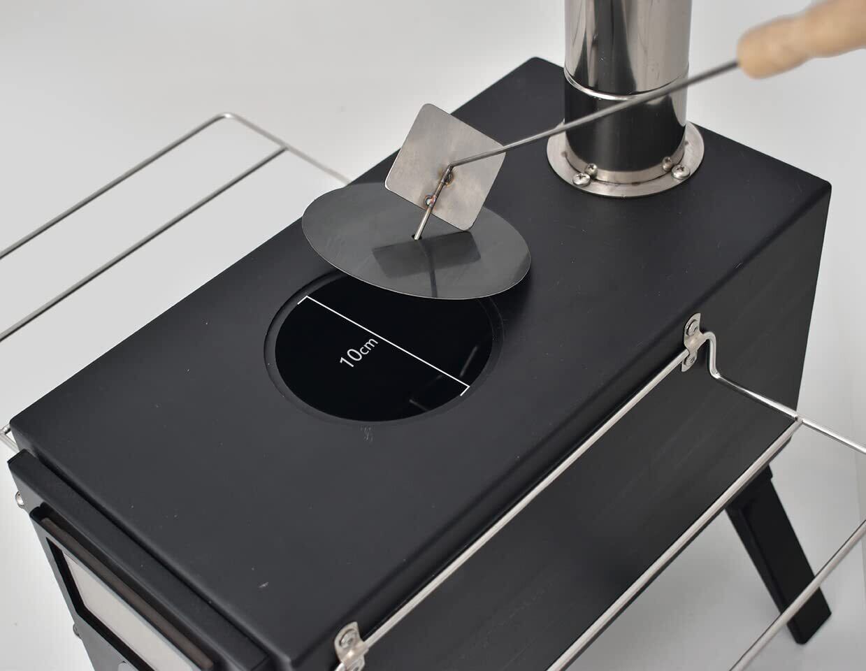 ストーブ両サイドにはグリットがついており、持ち運びに便利、小物の乾燥棚や補助の調理台としても使えます。本体はステンレス素材、耐久性・蓄熱性に優れています。