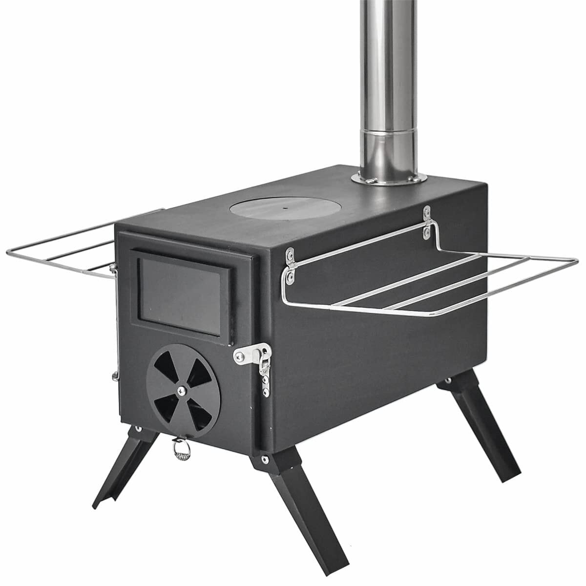 Anlik 薪ストーブ アウトドア調理 暖炉 キャンプ テント 煙突付き (ブラック/鉄製)