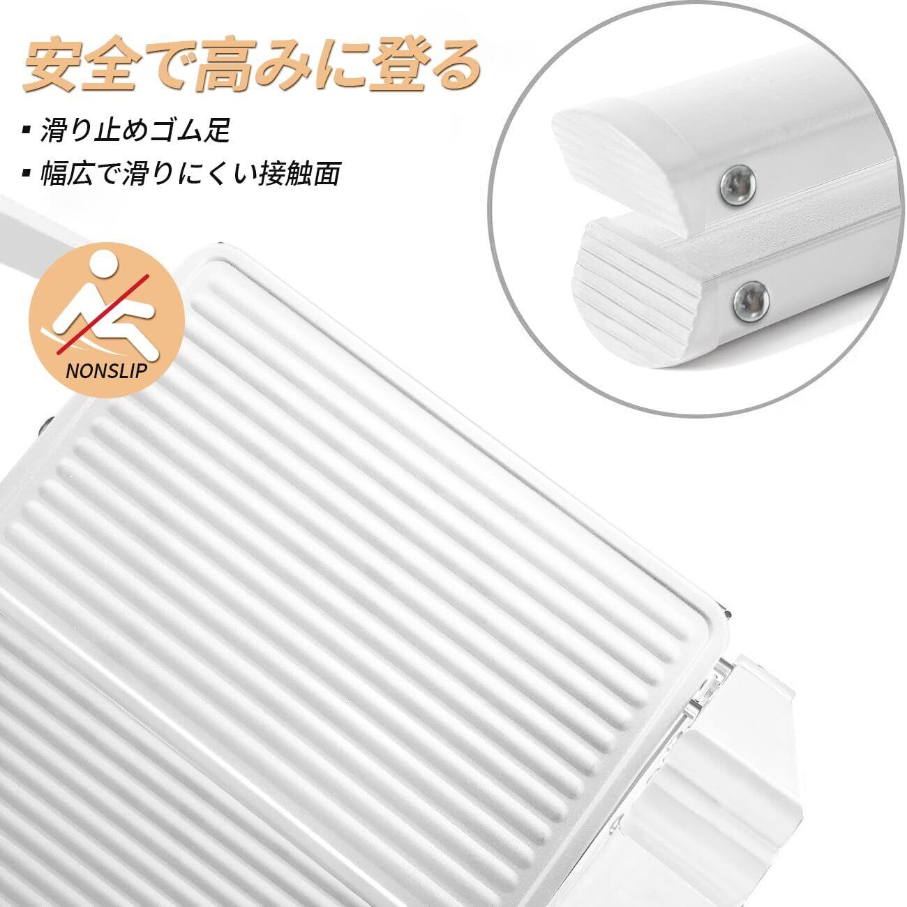 【安全に高さを登る】脚立 4段は滑り止めゴム足デザインで、強力なグリップを提供し、安定性を維持し、床の傷を防ぎます。踏み台のペダルの幅を広げて太くし、フルペダルを20cmに広げ、でこぼこのストライプの滑り止めデザインにより、脚立の登りがより安定します。