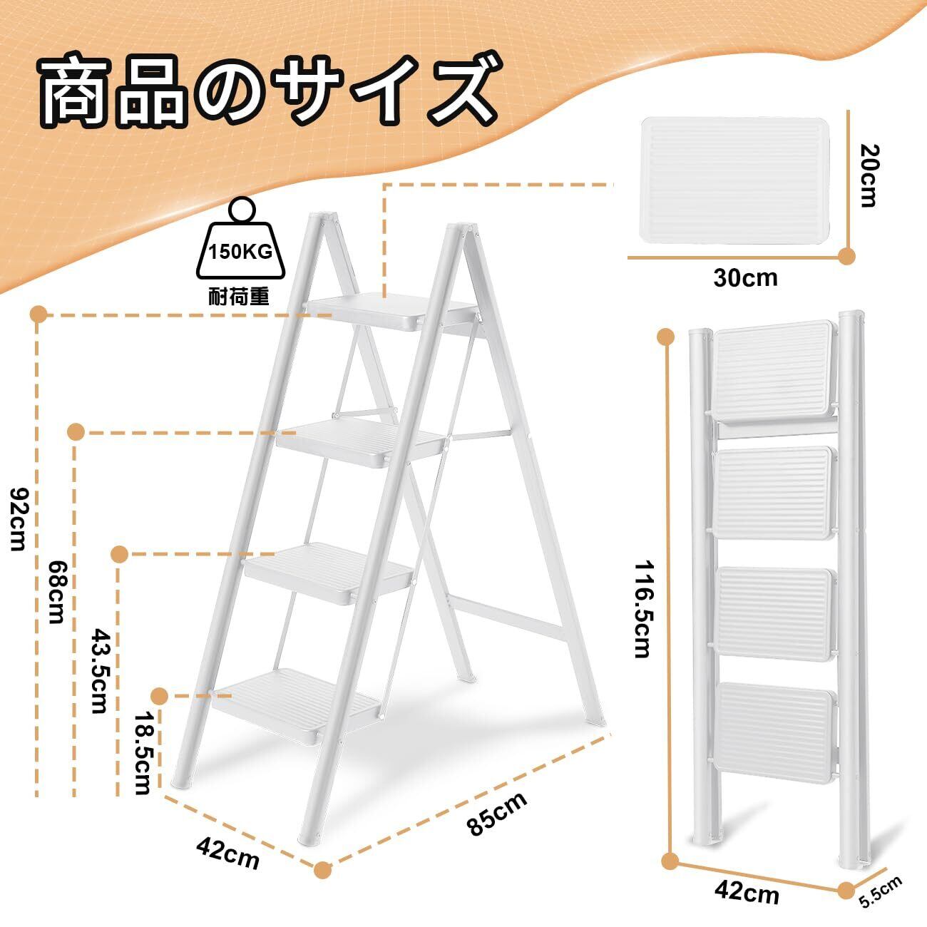 Double Elite 脚立 4段 折りたたみ 踏み台 鉄素材 軽量 安全 滑り止め付き おしゃれ ステップスツール はしご 耐荷重150KG 省スペース 多機能 室内 洗車台 屋外 ホワイト