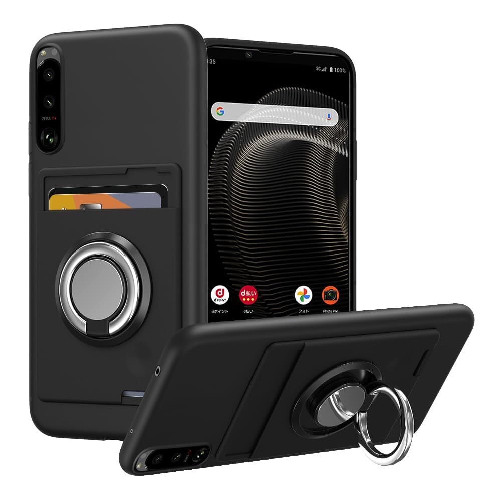 xperia 5 iii ケース SO-53B | SOG05 | XQ-BQ42 リング付き シリコン 背面 カード収納 エクスペリア 5 iii スマホケース スタンド機能 360°回転リング 耐衝撃 耐久 滑り止め 黑