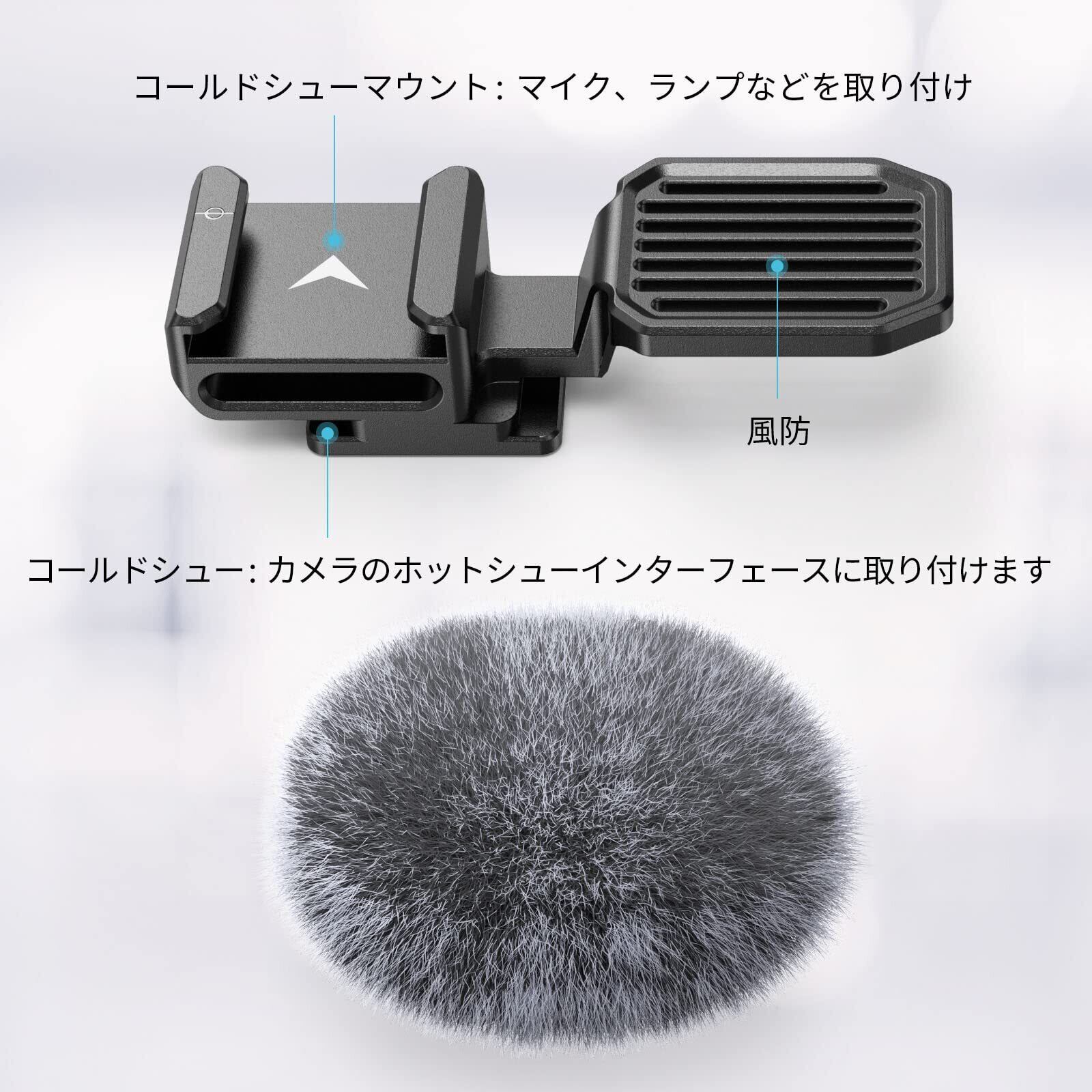 【風防】風防付きコールドシューアダプター は、ナイロン製で風防専用マイク材質と厚みのある内部デザインにより、屋外で撮影時に騒音を効果的に低減することができるます。