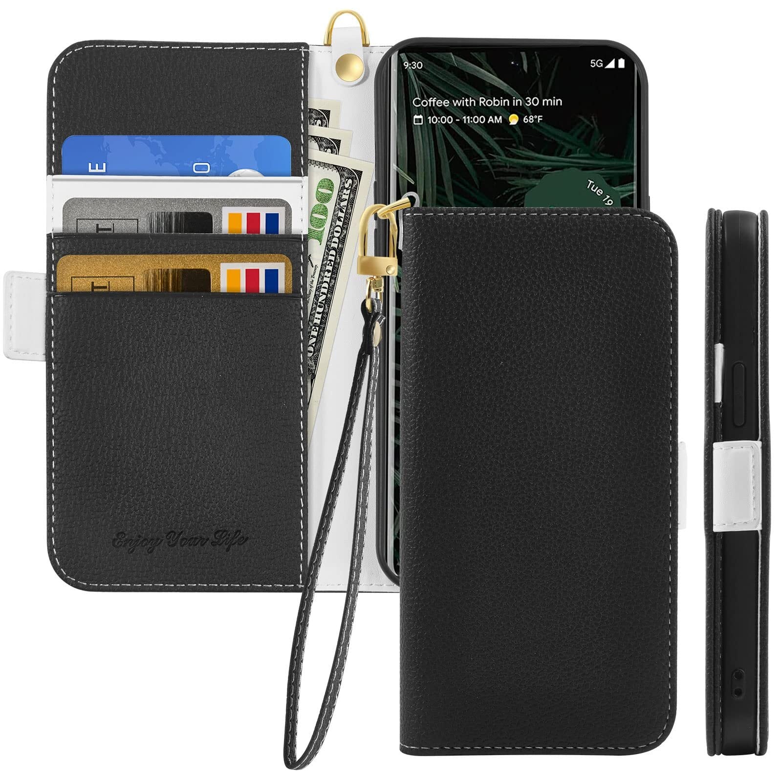 ALSDKEZI Pixel 6a ケース 手帳型, Google ピクセル 6A 用 カバー, 人気おしゃれ財布型カード収納 携帯ケース, ライチ柄高質PUレザー 良い触り心地 ケース サイドマグネット式 スマホケース スタンド機能 耐衝撃 保護カバー 大人 男女兼用 (ブラック/Black)