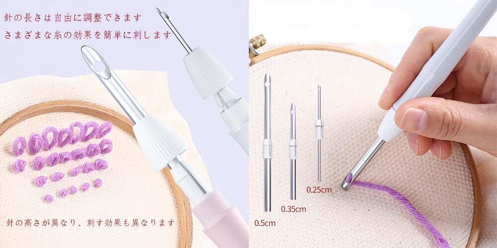 Paizizi パンチ針 ニードルパンチ フリーステッチングニードル 長さ調整(針先5mm+3.5mm+2.5mm+1.6mm)糸通し付き 刺繍キット
