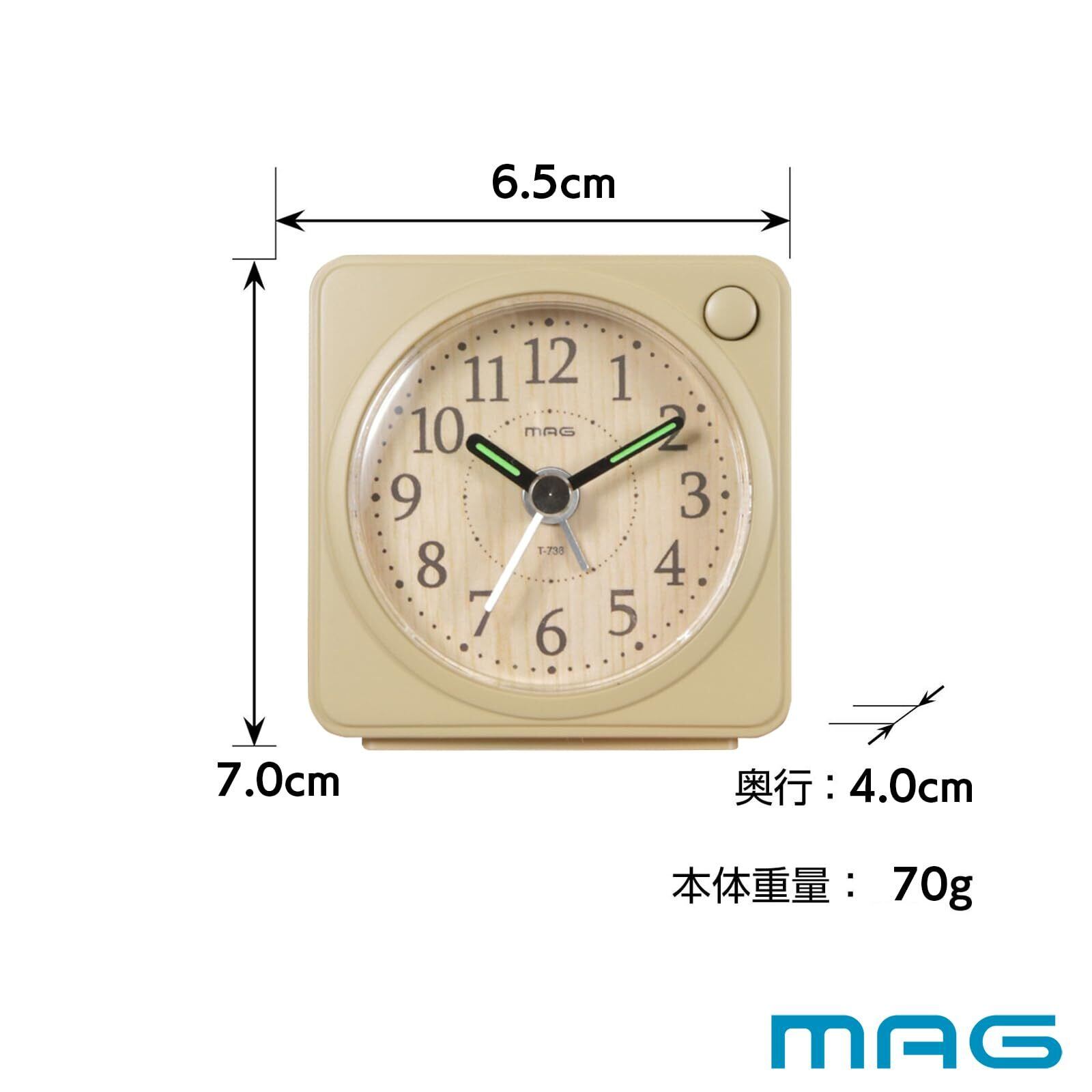 MAG(マグ) 目覚まし時計 置き時計 小型 小さい アナログ かわいい おしゃれ インテリア 静音 連続秒針 電子音 アラーム スヌーズ ライト ナチュラル ミニモク T-736 N-Z ノア精密