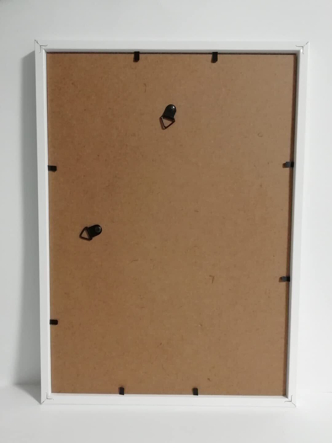 ポスターサイズ:210㎜×297㎜(A4サイズ) 額縁サイズ:238㎜×329㎜ 重量:約200グラム 額縁窓:PET(プラスチック素材) 額縁カラー:白