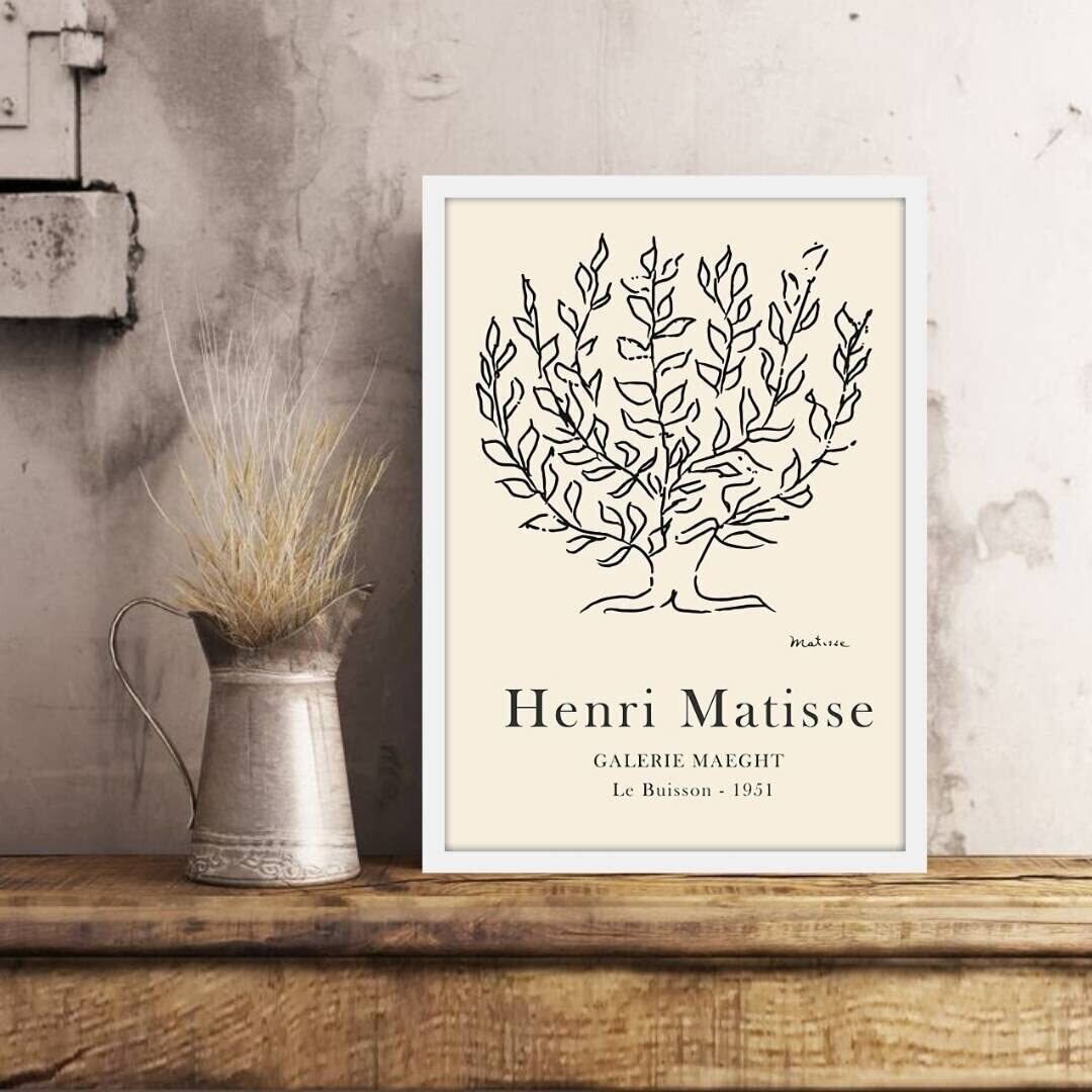 アンリマティス 低木 フレーム付き ポスターaoipro (白フレーム, A4サイズ)