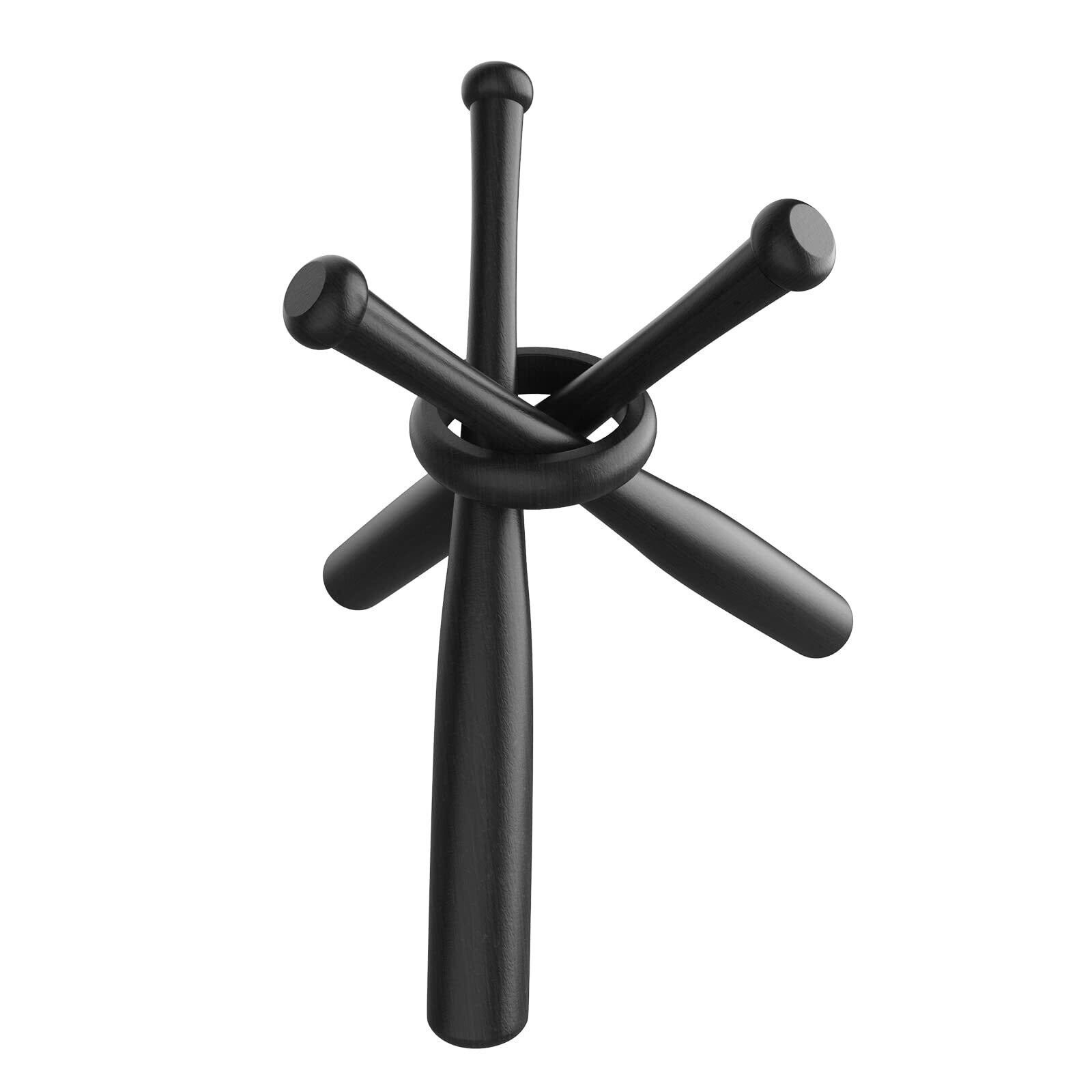 野球飾りバット サインボール置き 野球ボールスタンド ベースボールホルダー ディスプレイスタンド コレクション 木製 (黒)