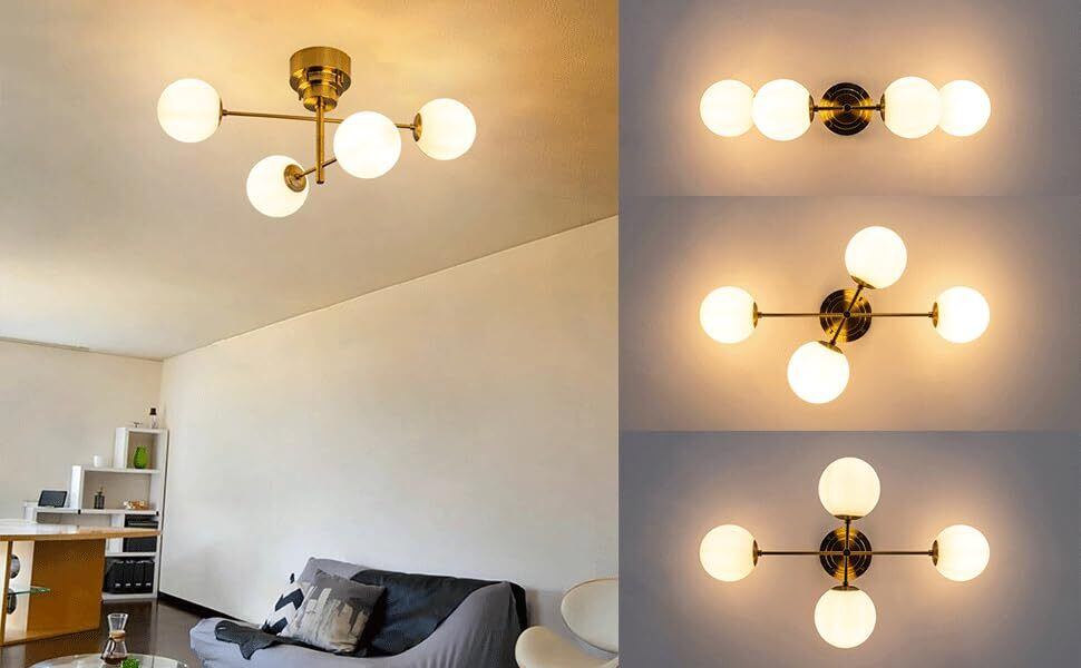 Chende シーリングライト 真鍮 ガラス 4灯 LED対応 ペンダントライト おしゃれ 北欧 リビング ダイニング 寝室 カフェ レトロ アンティーク 照明器具 天井照明 ゴールド CEI-010-JP