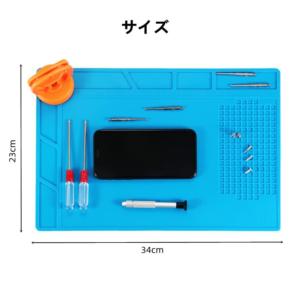 サムコス 作業マット 絶縁 マット断熱パッド 無臭無毒 シリコン製 溶接用 500℃高温熱風に耐える 34*23cm 卓上作業マット電子製品 携帯 パソコン分解修理用 耐熱マット(ブルー)