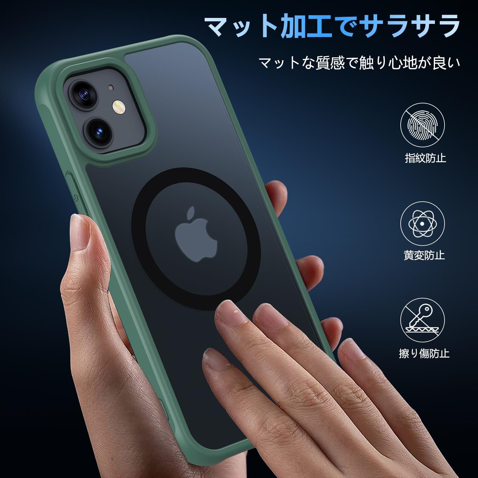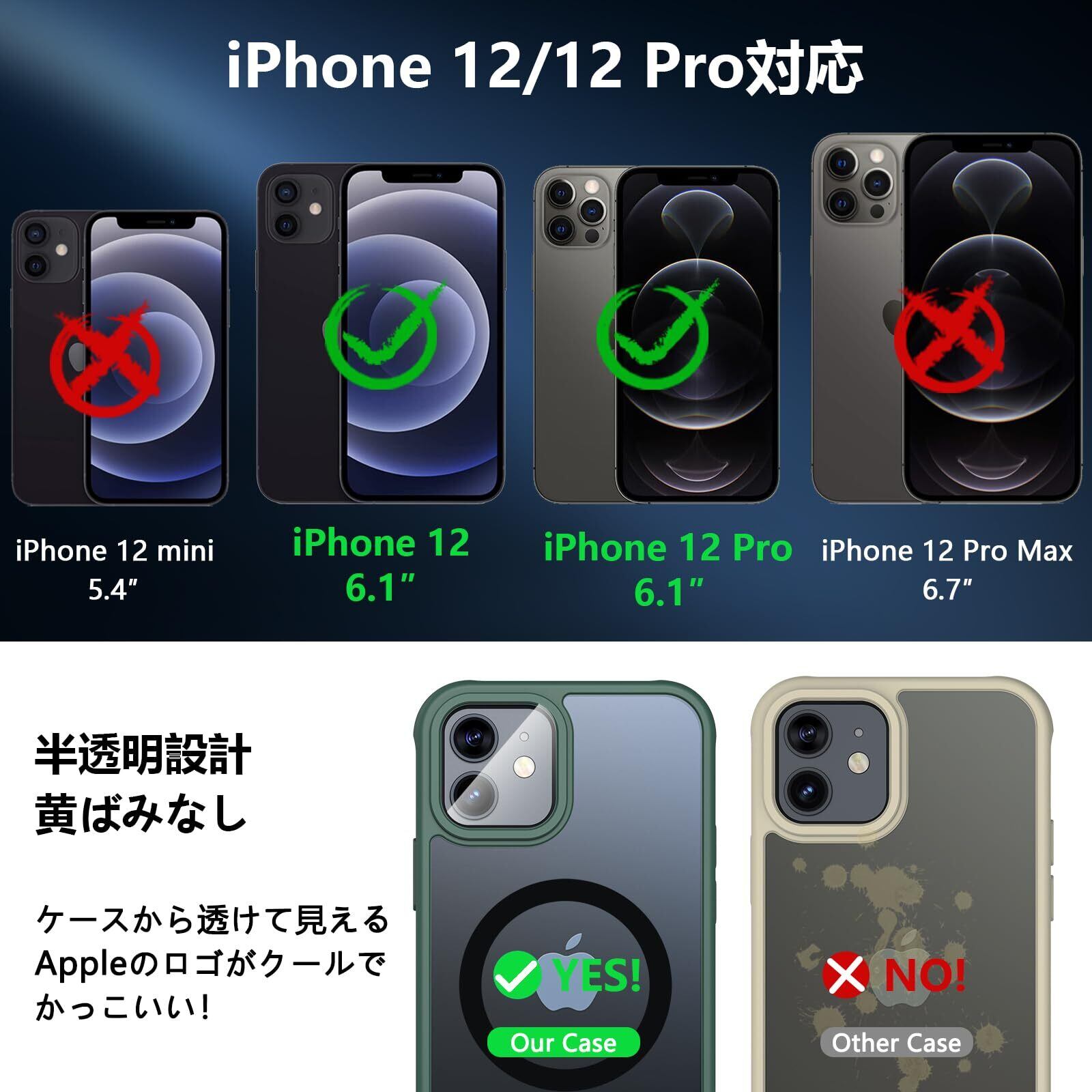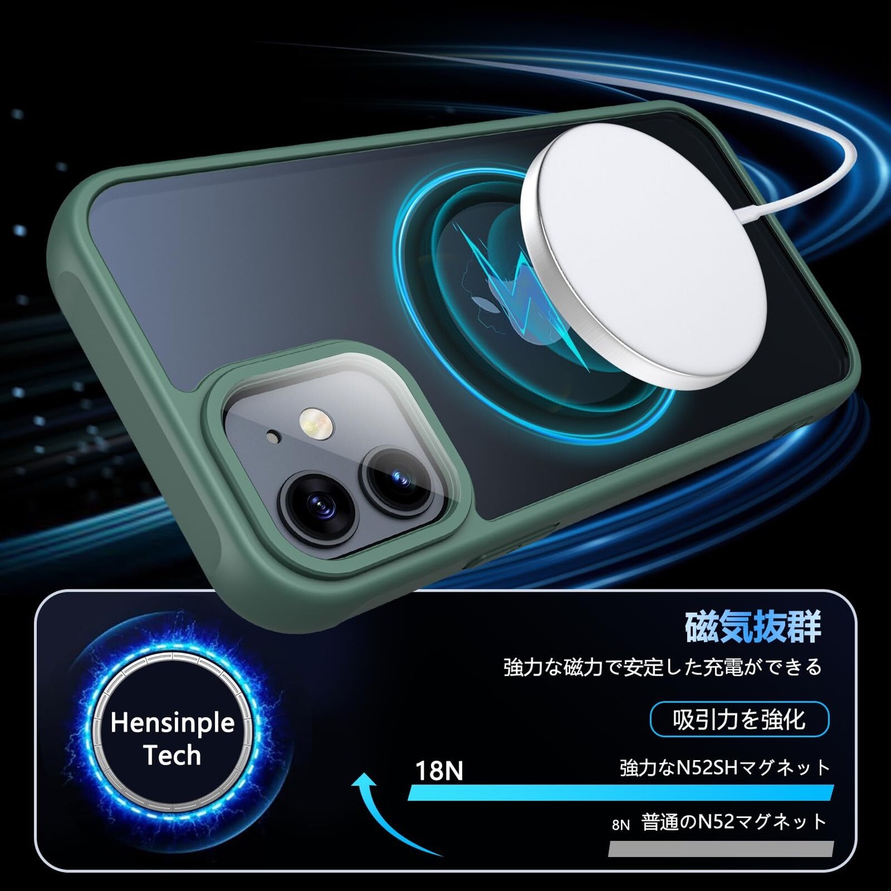 Hensinple iPhone 12/12 Pro ケース 【MagSafe対応・ガラスフィルム付き】 iPhone12 ケース 半透明 マット感 黄ばみなし いphone12 pro ケース 耐衝撃 滑り止め 指紋防止 黄ばみなし アイフォン12ケース マグネット搭載 マグセーフ対応 ストラップホール付き iPhone 12/12 Pro スマホケース 6.1インチ用 グリーン