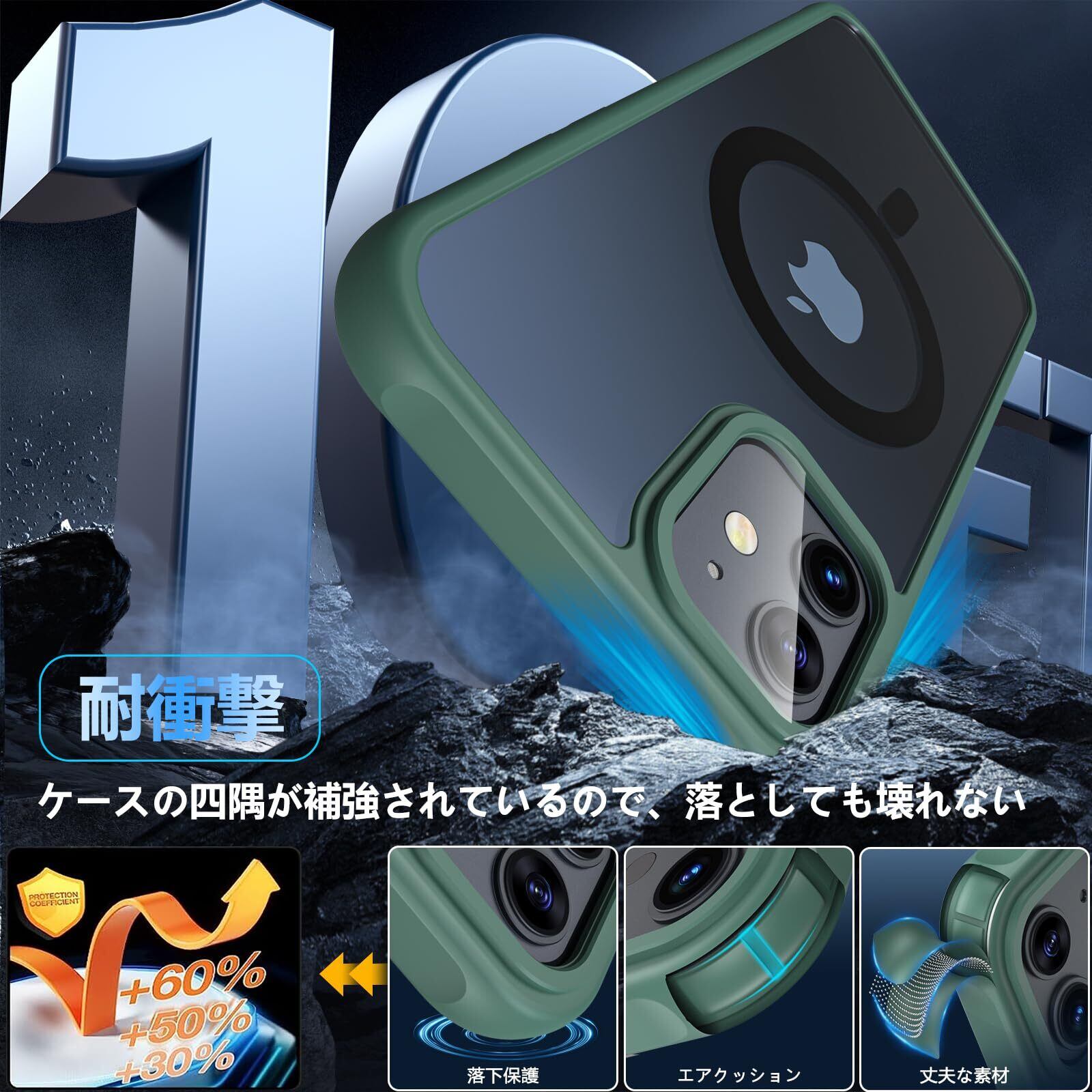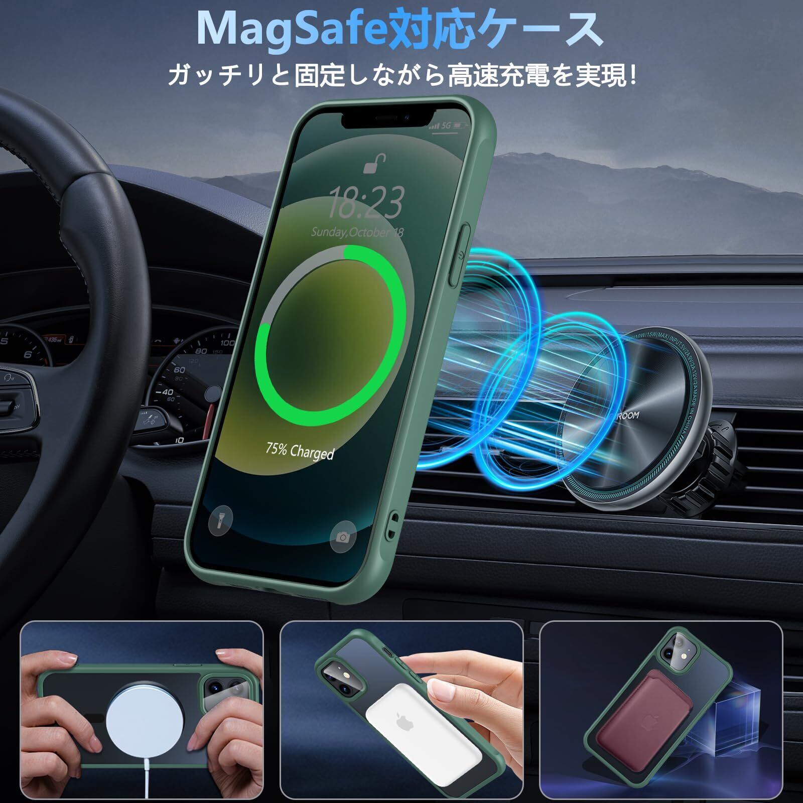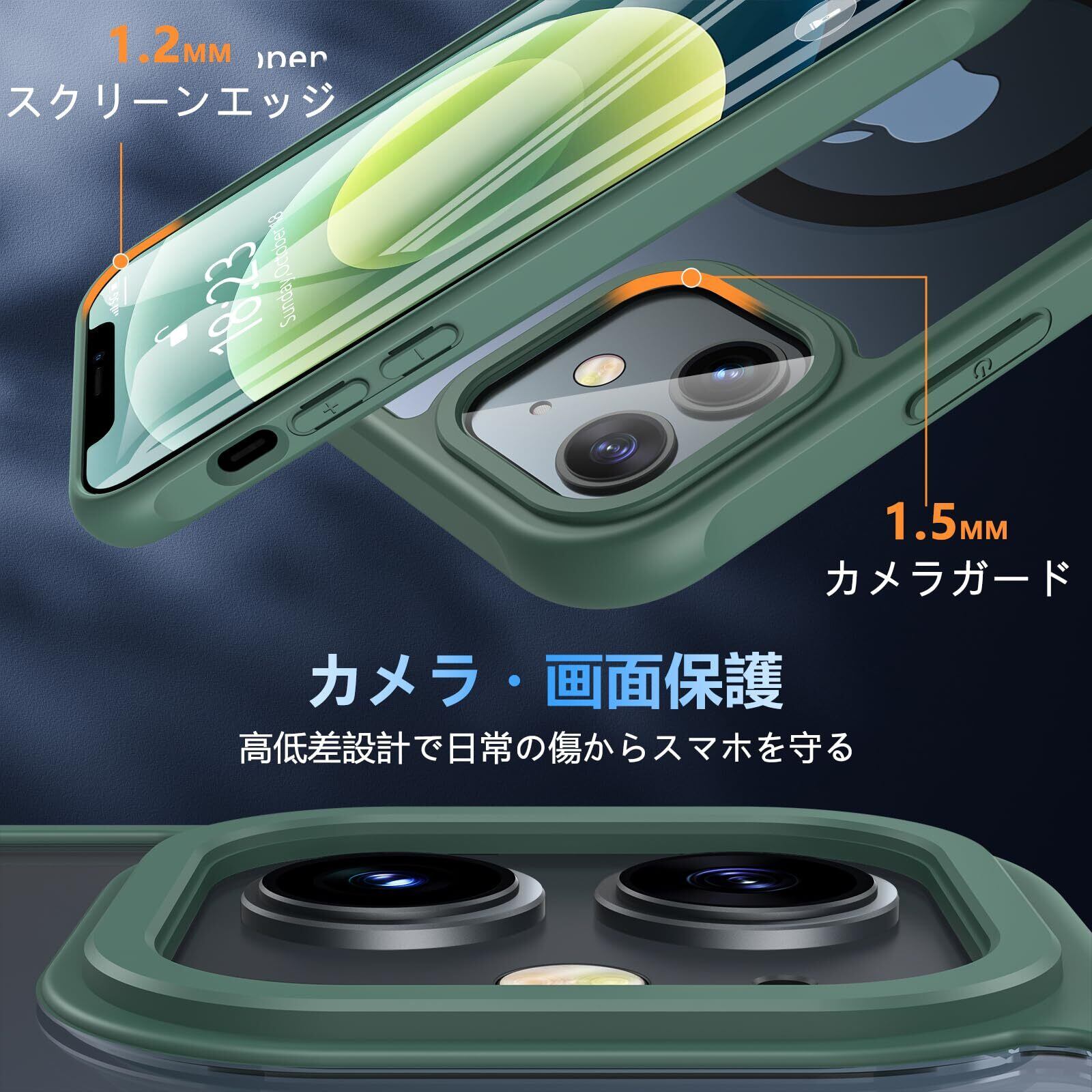 Hensinple iPhone 12/12 Pro ケース 【MagSafe対応・ガラスフィルム付き】 iPhone12 ケース 半透明 マット感 黄ばみなし いphone12 pro ケース 耐衝撃 滑り止め 指紋防止 黄ばみなし アイフォン12ケース マグネット搭載 マグセーフ対応 ストラップホール付き iPhone 12/12 Pro スマホケース 6.1インチ用 グリーン