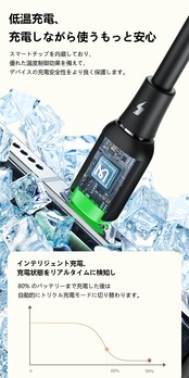 【太くする銅製芯線、安全に充電速度をアップ】:5パート太い錫メッキ銅芯線を採用しており、強い導電性を備えて、外部干渉を排除し、高速かつ安定した充電を実現しました。【低温充電、充電しながら使うもっと安心】:スマートチップを内蔵しており、優れた温度制御効果を備えて、デバイスの充電安全性をより良く保護します。インテリジェント充電、充電状態をリアルタイムに検知し、80% のバッテリーまで充電した後は自動的にトリクル充電モードに切り替わります。【LED充電ライト付き】:コネクタの先端に超実用的なライトリングを付いており、夜間の充電時に暗闇を恐れません。充電インジケータライトが付属しており、通電後と点灯します。