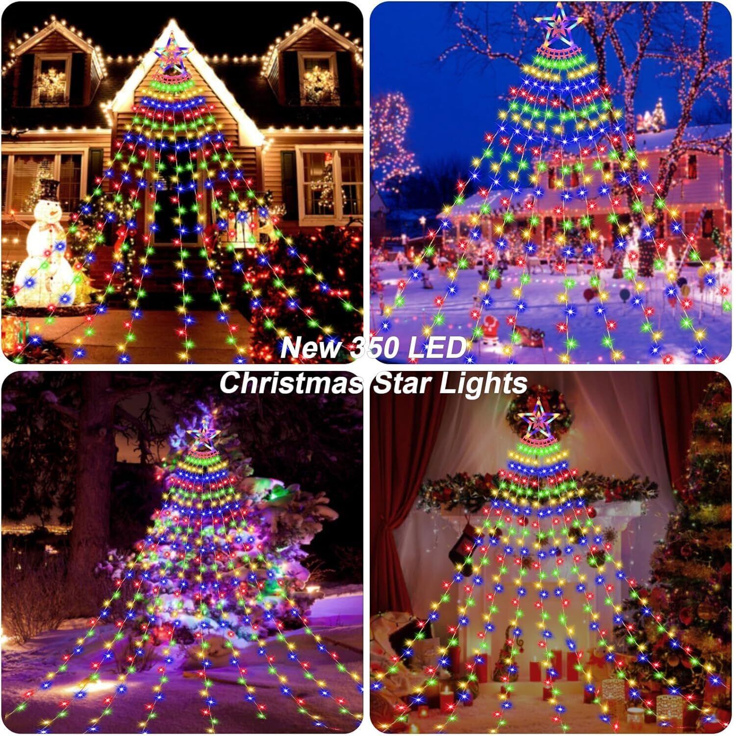 V-Dank ソーラー クリスマス イルミネーション ライト LED 屋外 防水 350球 USB充電可 ドレープライト クリスマス イルミネーション 星 13モード 遠隔リモコン クリスマスツリーライト タイマー 記憶 電飾 飾り ライト ストリップライト 自動点灯 消灯 パーティー 新年 祝日 結婚式 庭対応(カラフル)