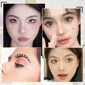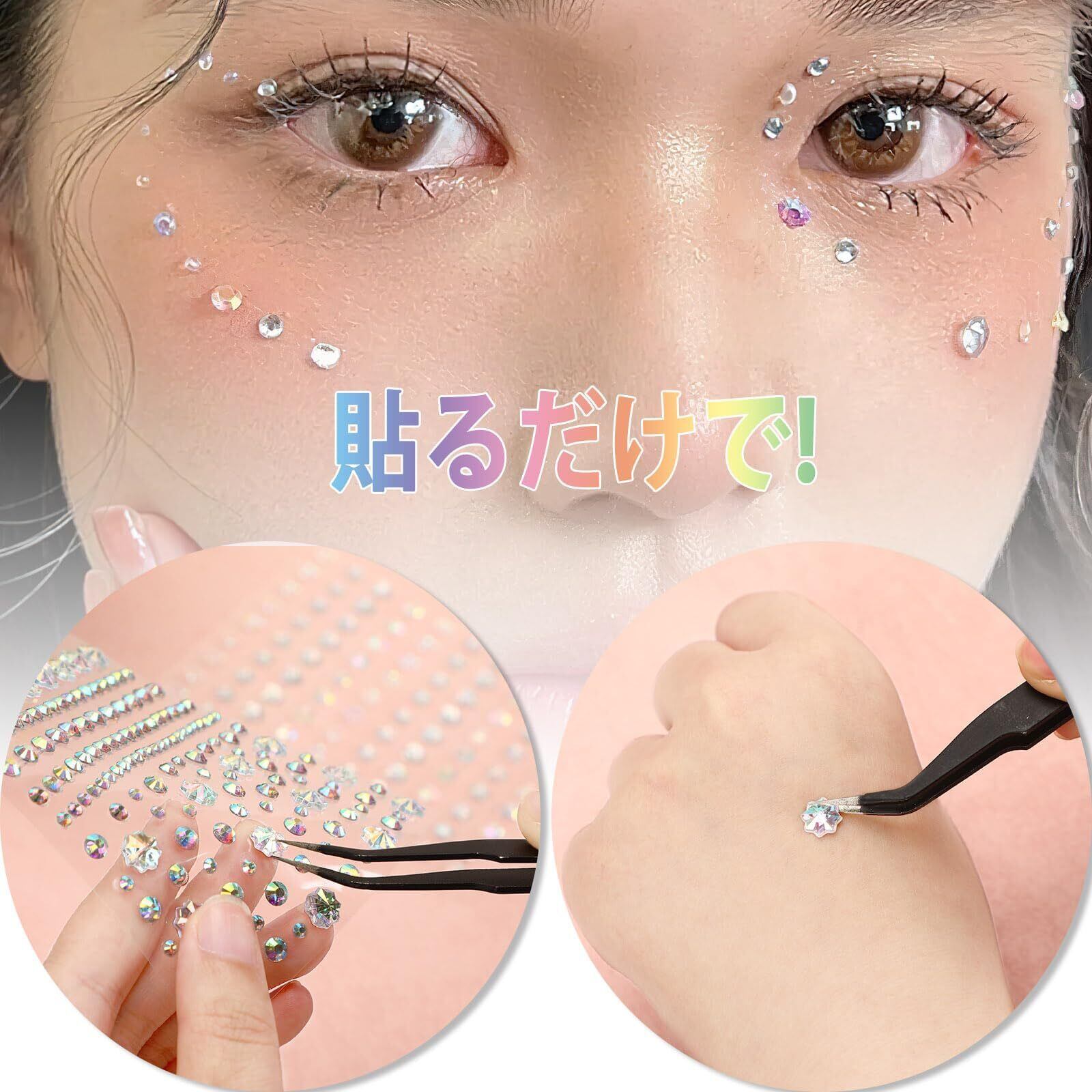 幅広く適用:華やかなデザイン、適度なサイズ感で、様々なシーンで活躍しています。目や顔のまわりに、フェイスクリスタルを1粒のせるだけで顔立ちがぐっと輝き、おしゃれ顔に変身できます。顔に貼るシールだけでなく、耳、手、鎖骨などにつけて、メイクをデコレーションします。それに、ネイルデザインのデコストーンにもよく使います。スマホケース、コップ、うちわなどのデコパーツにも活用できます