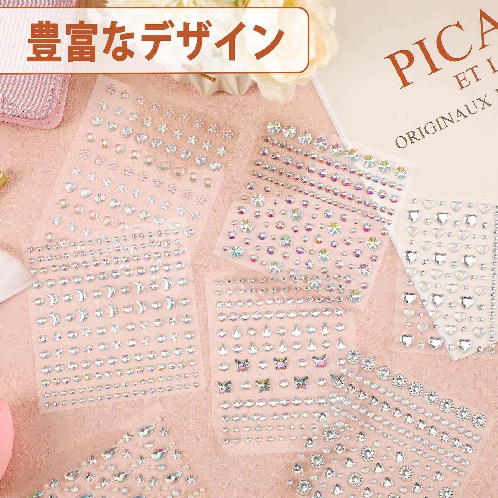 デザインいっぱい:パッケージには、計10枚のラインストーン シールが入っています。各枚に数十粒のラインストーンがあり、デザインも豊富です。円型、星、月、ハート、蝶、涙型、花、パールなど、多様なストーンシールを用意しているので、好きに使ってください