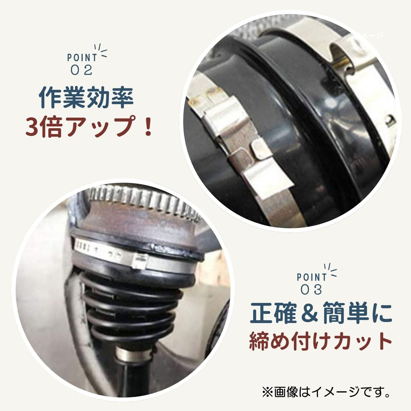 ドライブ シャフト ブーツ セットで作業効率アップ:ブーツバンド カッターは、難しいプライヤーでの引っ張って締め付ける作業に比べ、簡単にバンドをしっかり締め付けることができ、不要なブーツバンドを綺麗にカットすることができます。作業時間を短縮し、正確な作業をサポートします。