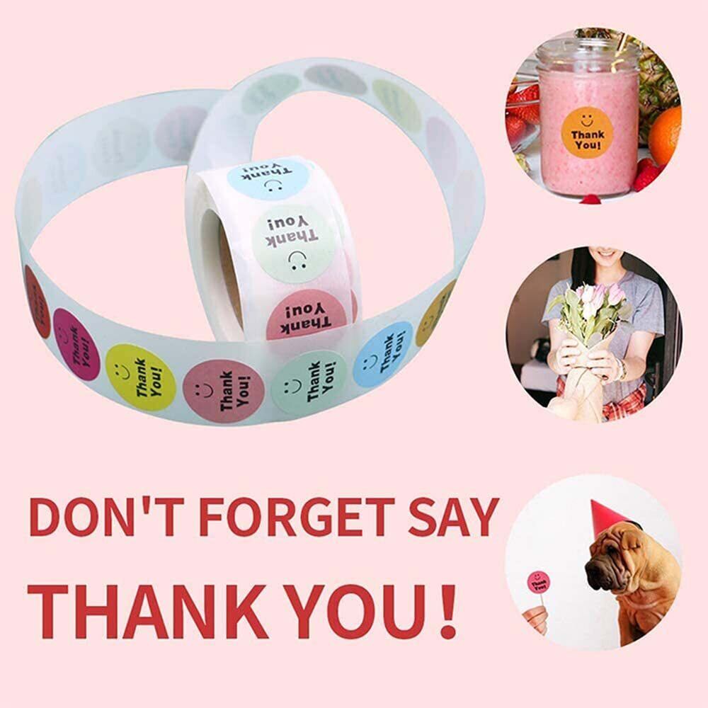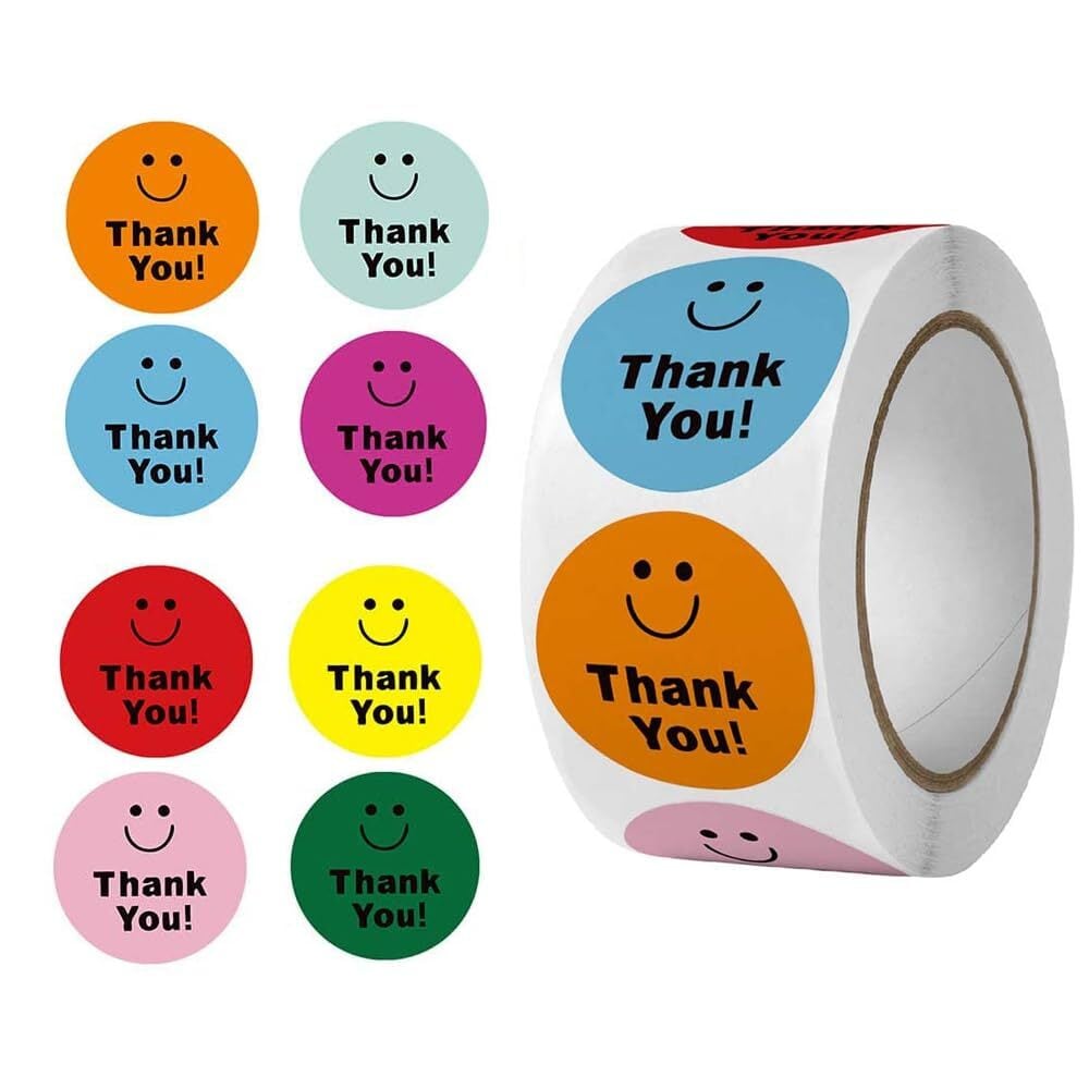 MOCOXYKLXY 感謝シール 丸型 ありがとう サンキューシール 笑顔の表情Happy可愛いシール(500枚入り 一枚25㎜) 母の日、結婚式、誕生日、記念日、感謝の日用 ステッカー 感謝シール 丸型 カラー Thank You ありがとうシール(赤、黄、ピンク、緑、オレンジ、水色、青、赤紫)