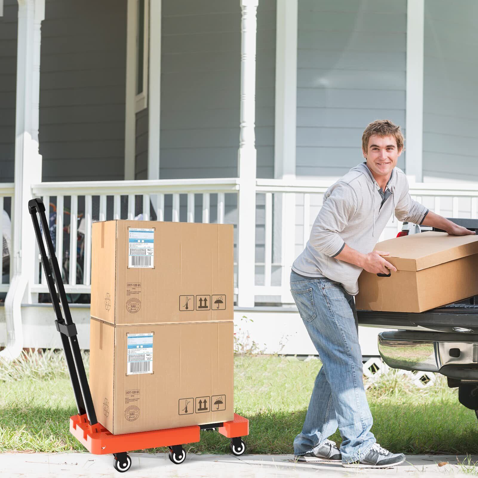 SOLEJAZZ 台車 折りたたみ式 軽量 静音 耐荷重200KG 伸縮荷台 コンパクト 女性向き 固定ロープ付き 家庭・業務用 運搬・介護・作業・防災・避難用品 オレンジ