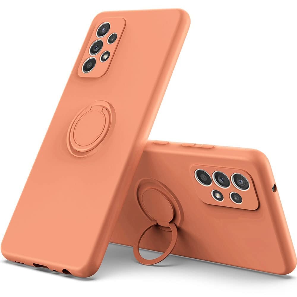 Galaxy A53 5G SC-53C SCG15 用 リング付き ソフトケース オレンジ TPU保護ケース スタンド機能付き 360回転カバー 耐衝撃 シリコン 素材 超薄型 背面カバー 落下防止 ギャラクシー A53 ファイブジー