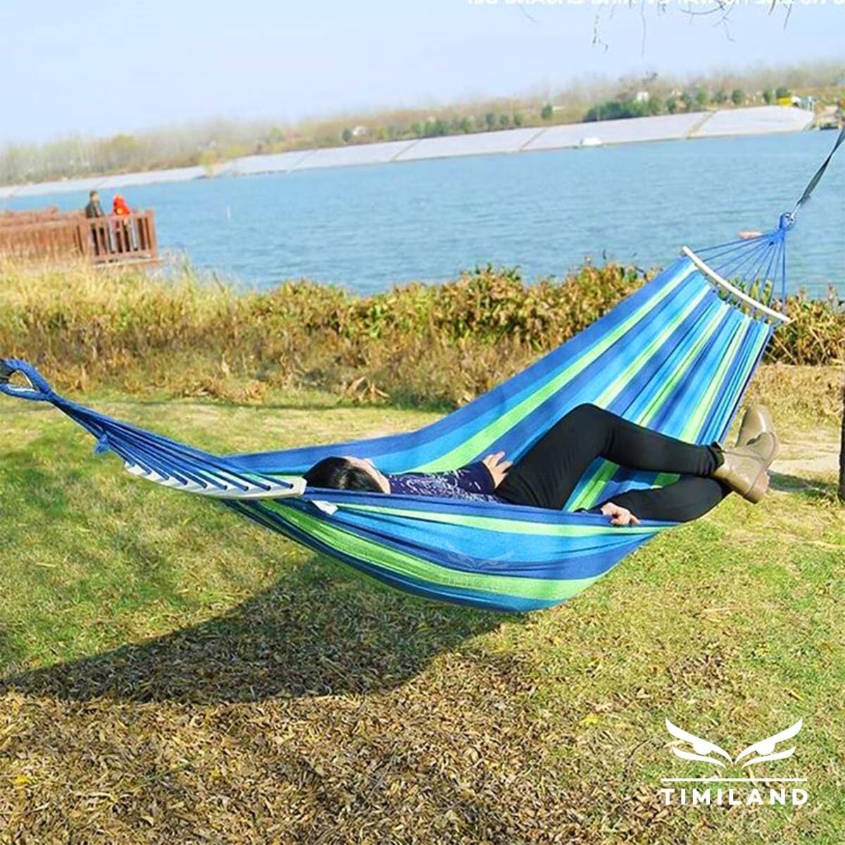 timiland ハンモック 自立式 室内 ブルー系 転倒防止仕様 1~2人用 アウトドア ハンモック キャンプ 軽量 収納袋付き 木枠付き ハンモック ブランコ ハンモック ソフトな綿生地の素材を採用し ハンモック 人気…