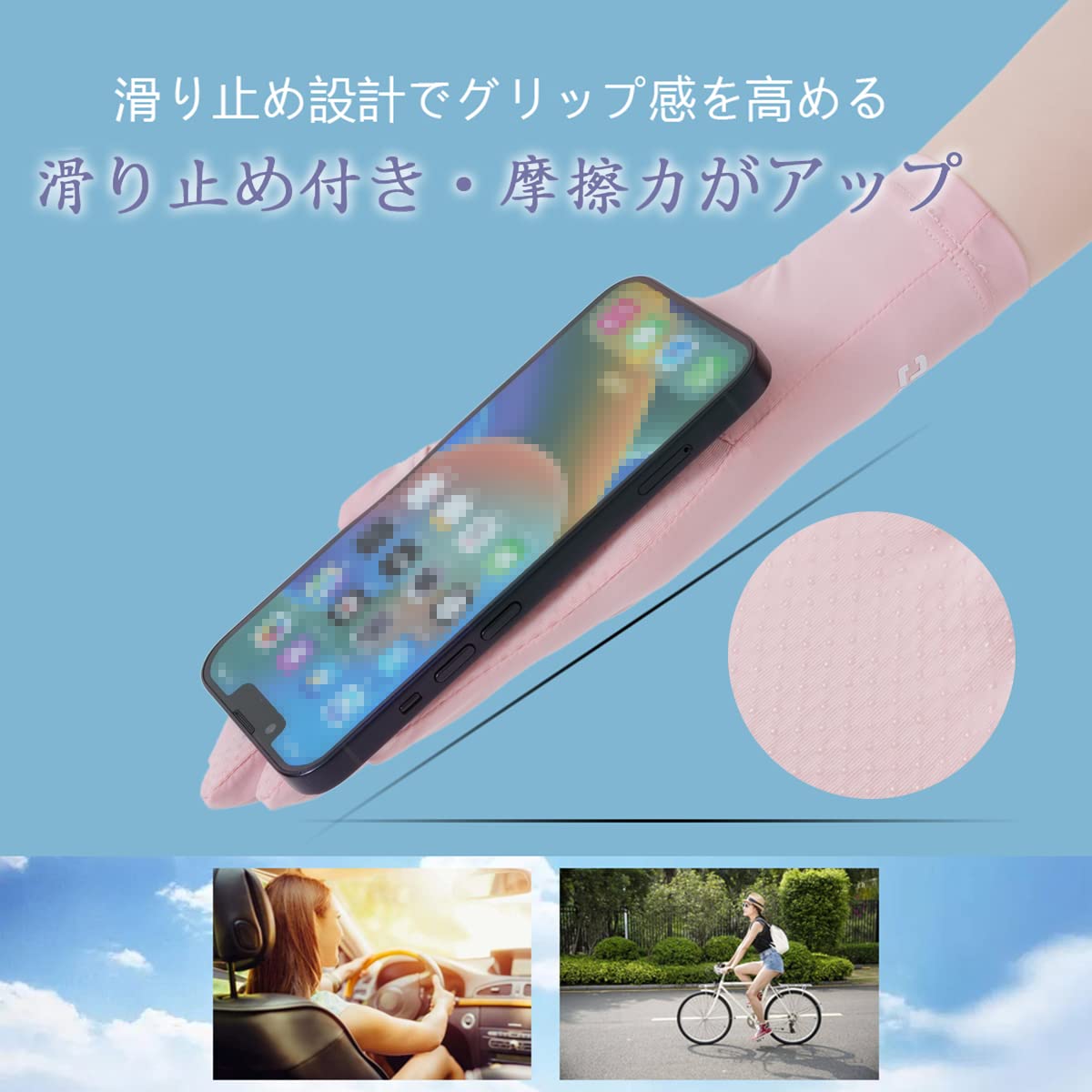 【接触冷感で暑い季節にうれしい】ひんやりしていて、春夏秋にピッタリのUVカット手袋です。冷感素材を採用して、水や汗で濡れると気化熱の作用により冷却効果があり、タッチすると涼しい感じがします。 吸湿性、放湿性も優れているので、蒸れなくサラサラとしたつけ心地で夏でも快適ご使用いただけます。