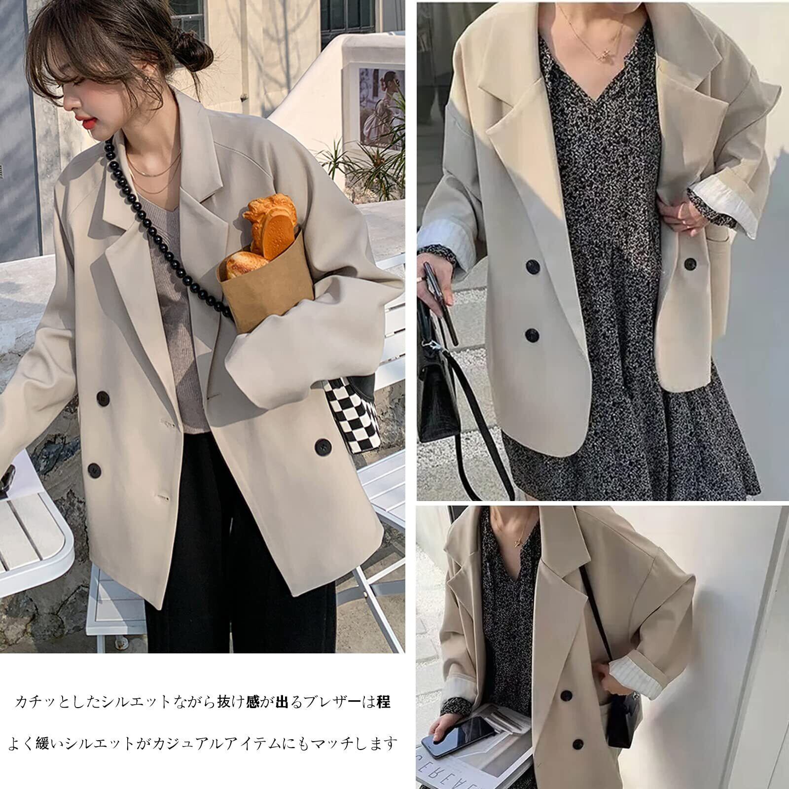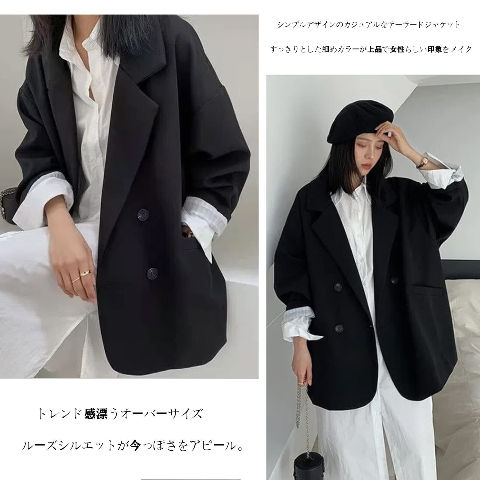 【ゆったりとしたシルエットテーラージャケットのサイズ】M:着丈72cm バスト:116cm 肩幅:51cm 袖丈:50cm L: 着丈73cm バスト:120cm 肩幅:52cm 袖丈:51cm XL:着丈74cm バスト:124cm 肩幅:53cm 袖丈:52cm。計測に付きましては手測りとなりますので 若干の誤差はご了承ください 。シンプルデザインのカジュアルなテーラードジャケット、すっきりとした細めカラーが上品で女性らしい印象をメイク。